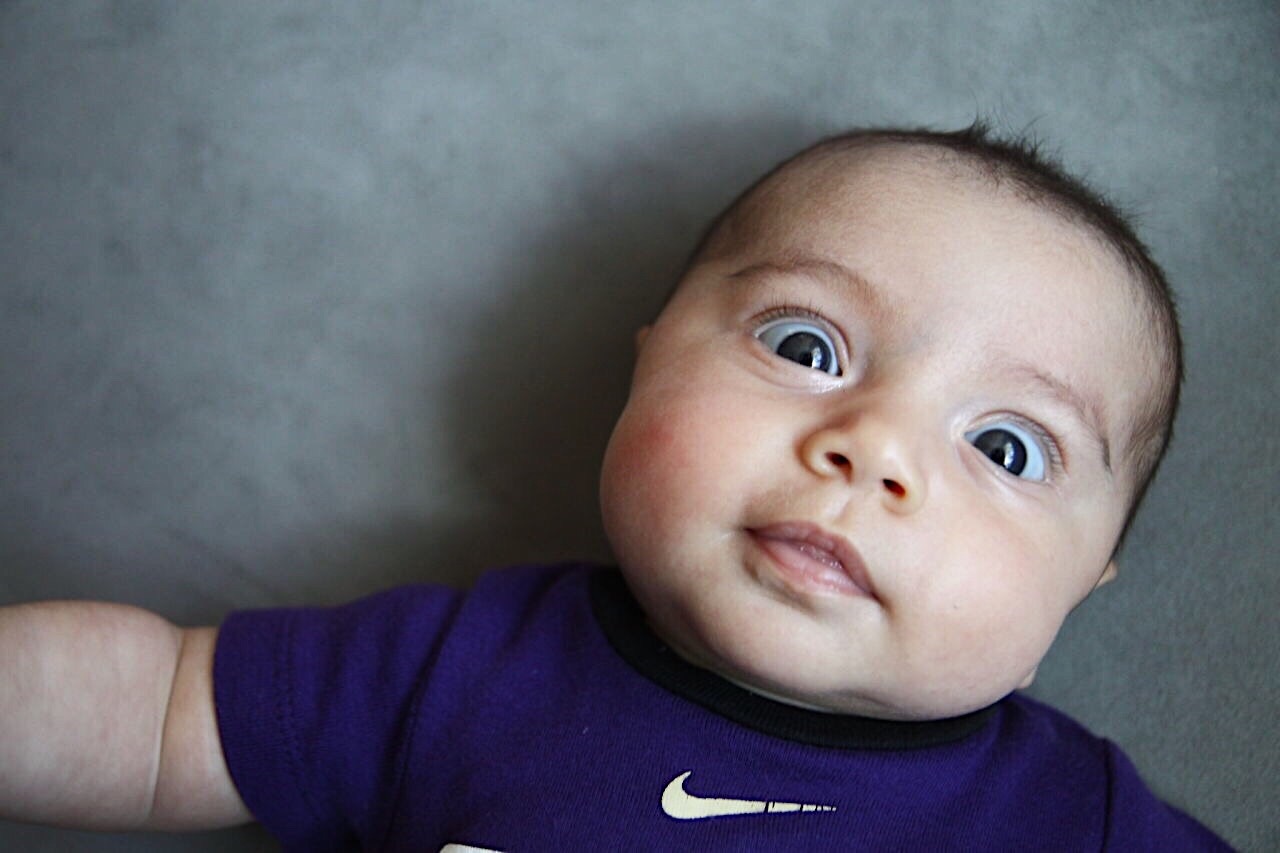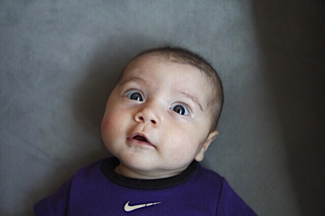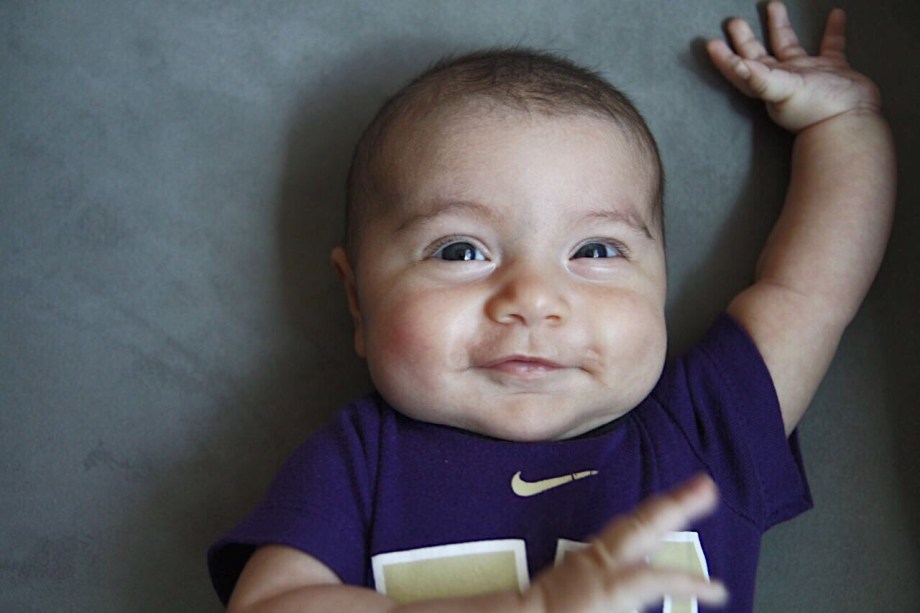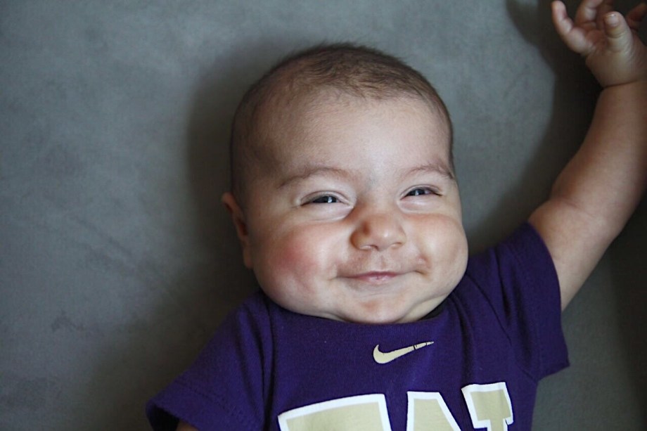 She really does smile with her whole body. I get lots of smiles during the day from Lila. She likes to smile at anyone that will look st her though… so long as they don’t try to hold her. She’s got about 4 dimples that show up at different times. One in each cheek and one just above her mouth on each side.