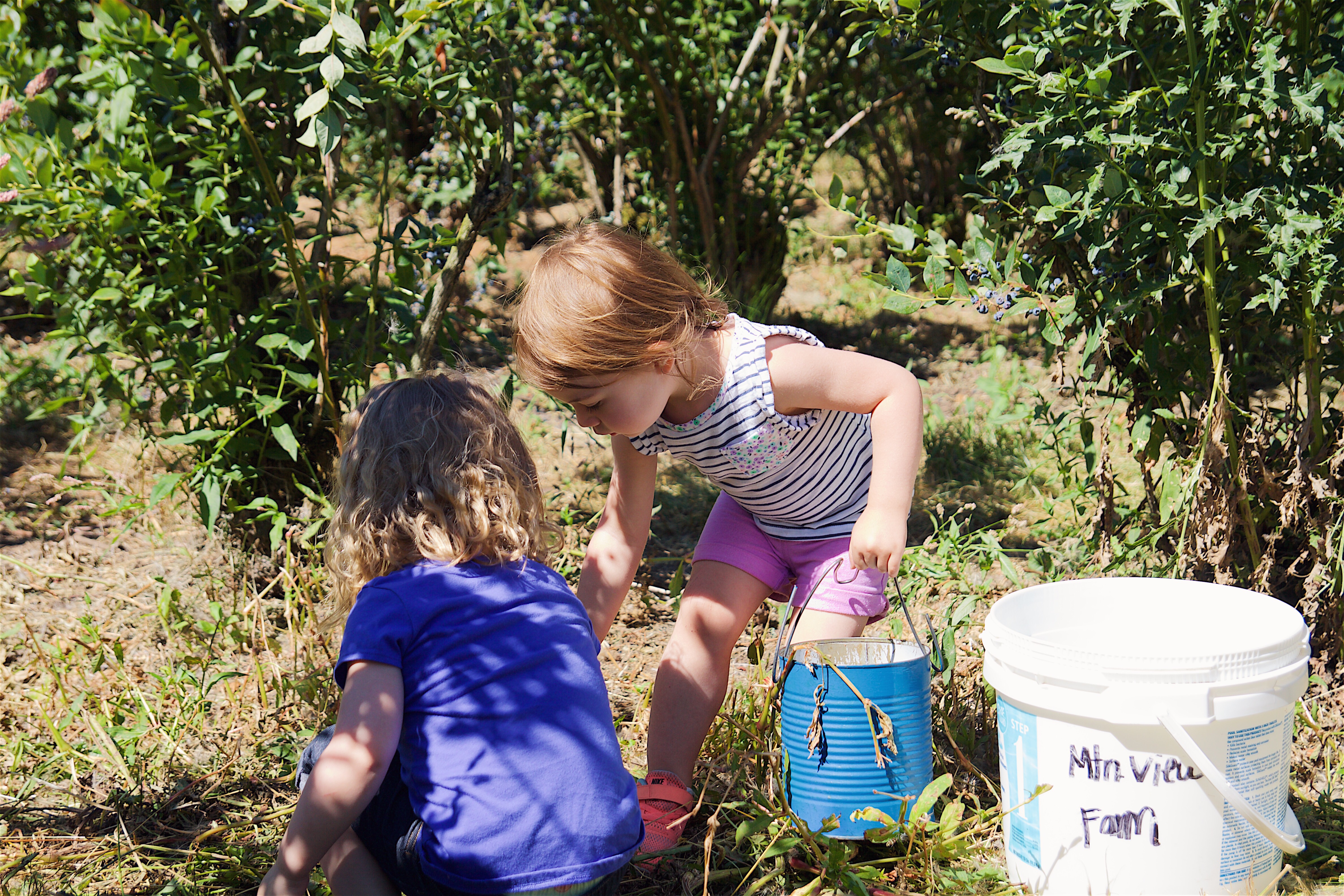 We made it back to the blueberry farm almost a year later. It’s great because it’s pretty close to our house and Ellie has so much fun. This time Ellie’s bestie joined us with her mom and baby sister (Lila’s unknown bestie). Definitely not the best time of day to get good photos, but I tried ☺️.