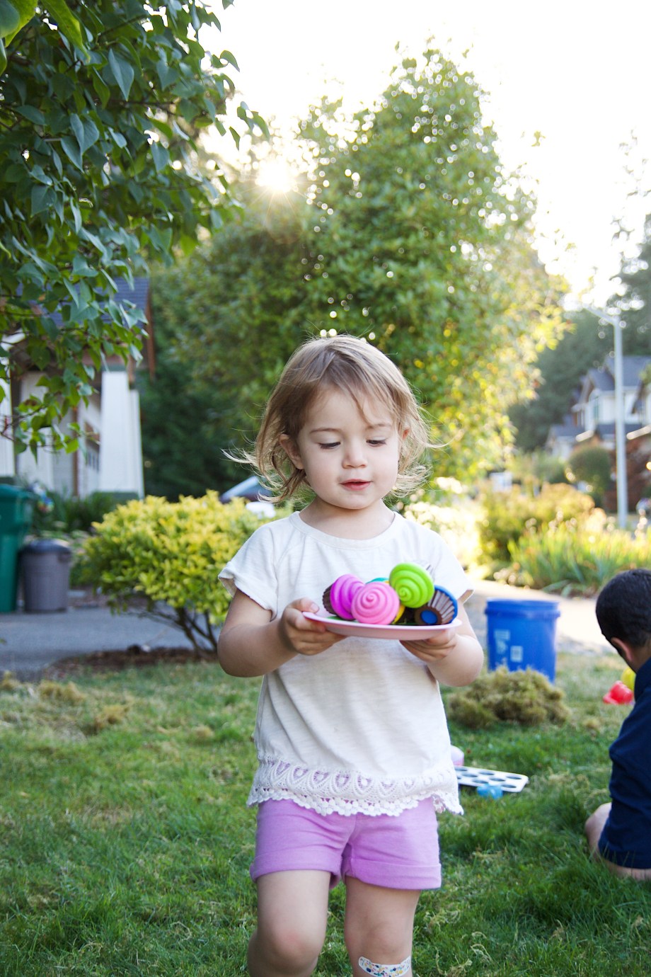 Ellie is always having tea parties with us and serving us food. I’m loving this imaginative play stage that she’s in. There are so many difficult things about a two year old, but there are also so many amazing things that are so much fun. I love her stories (she has a lot of them and has the memory of an elephant), playing “shop keeper” with her and having tea parties. She’s so much fun and so silly!