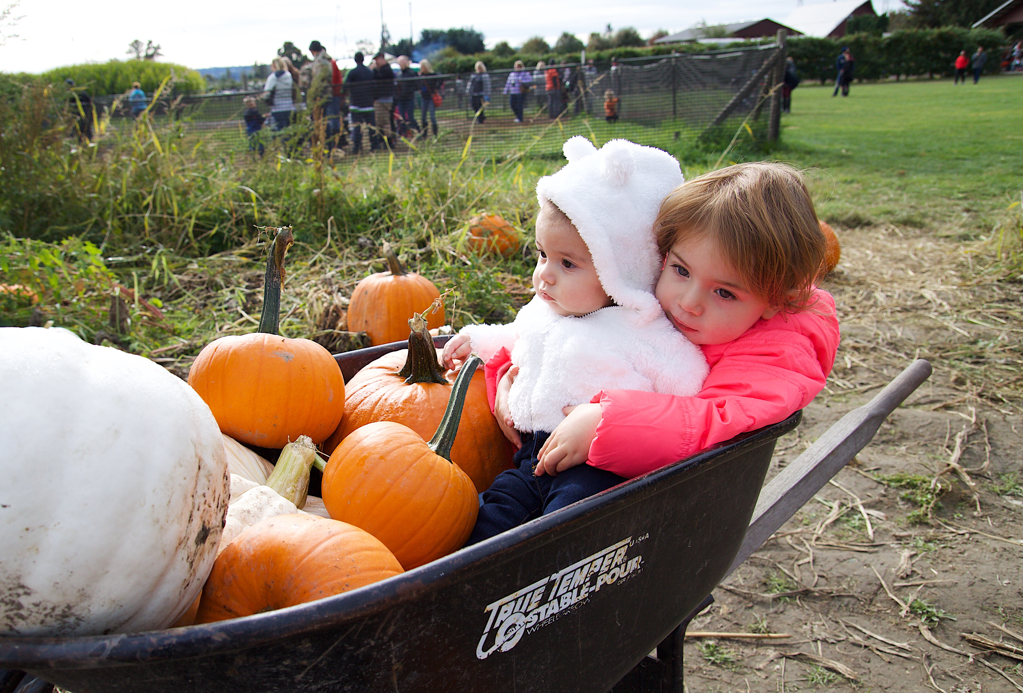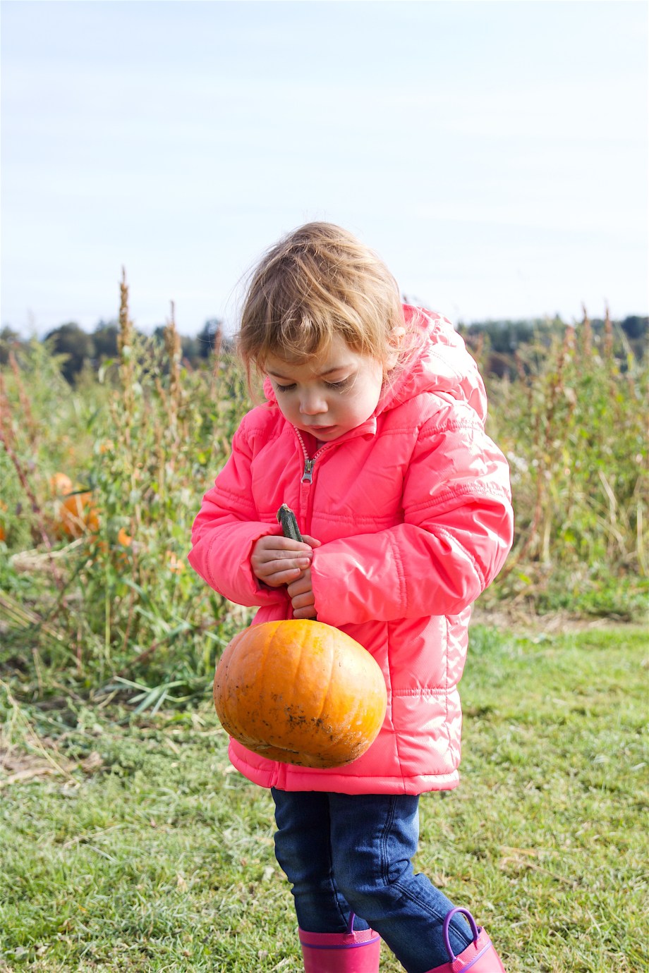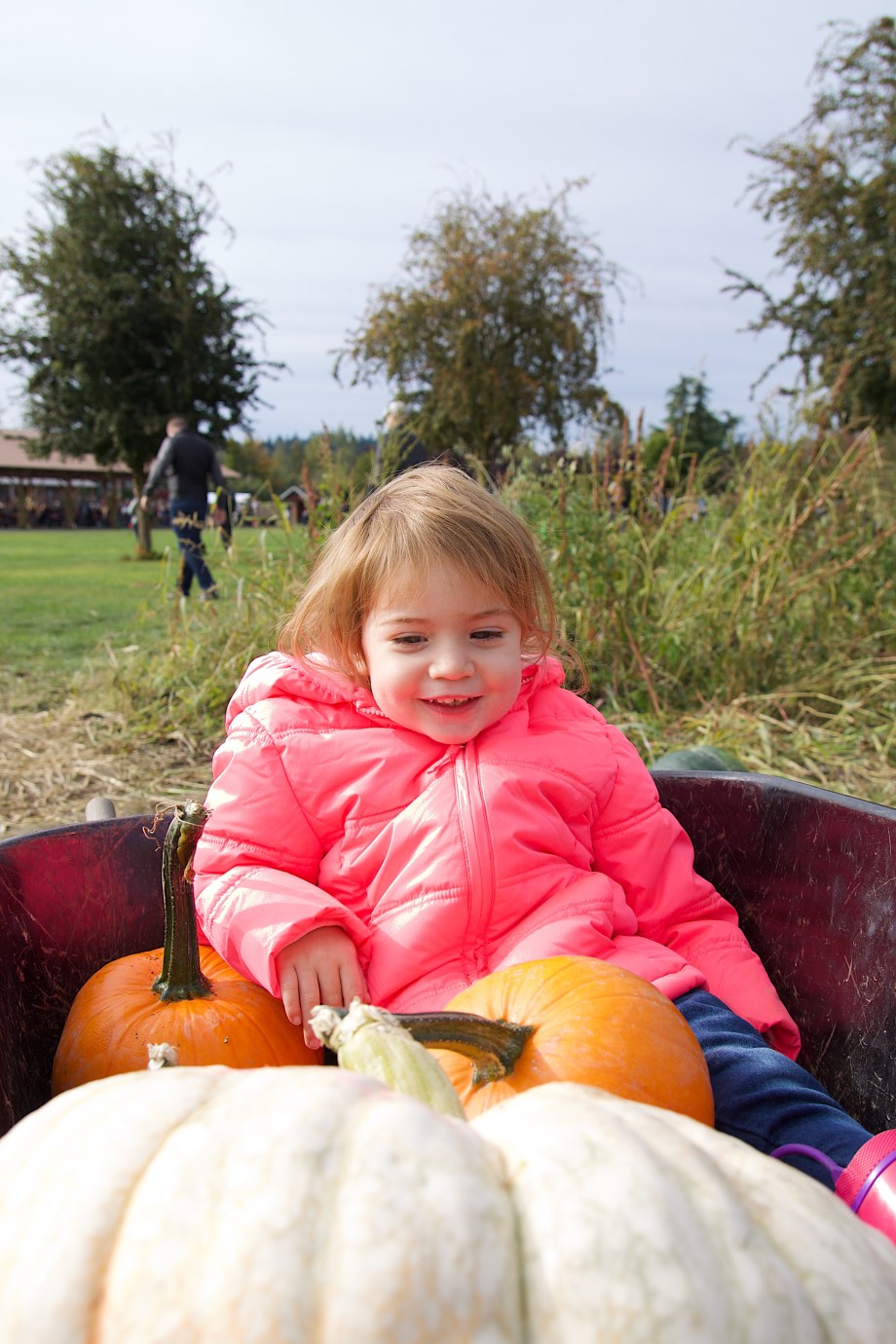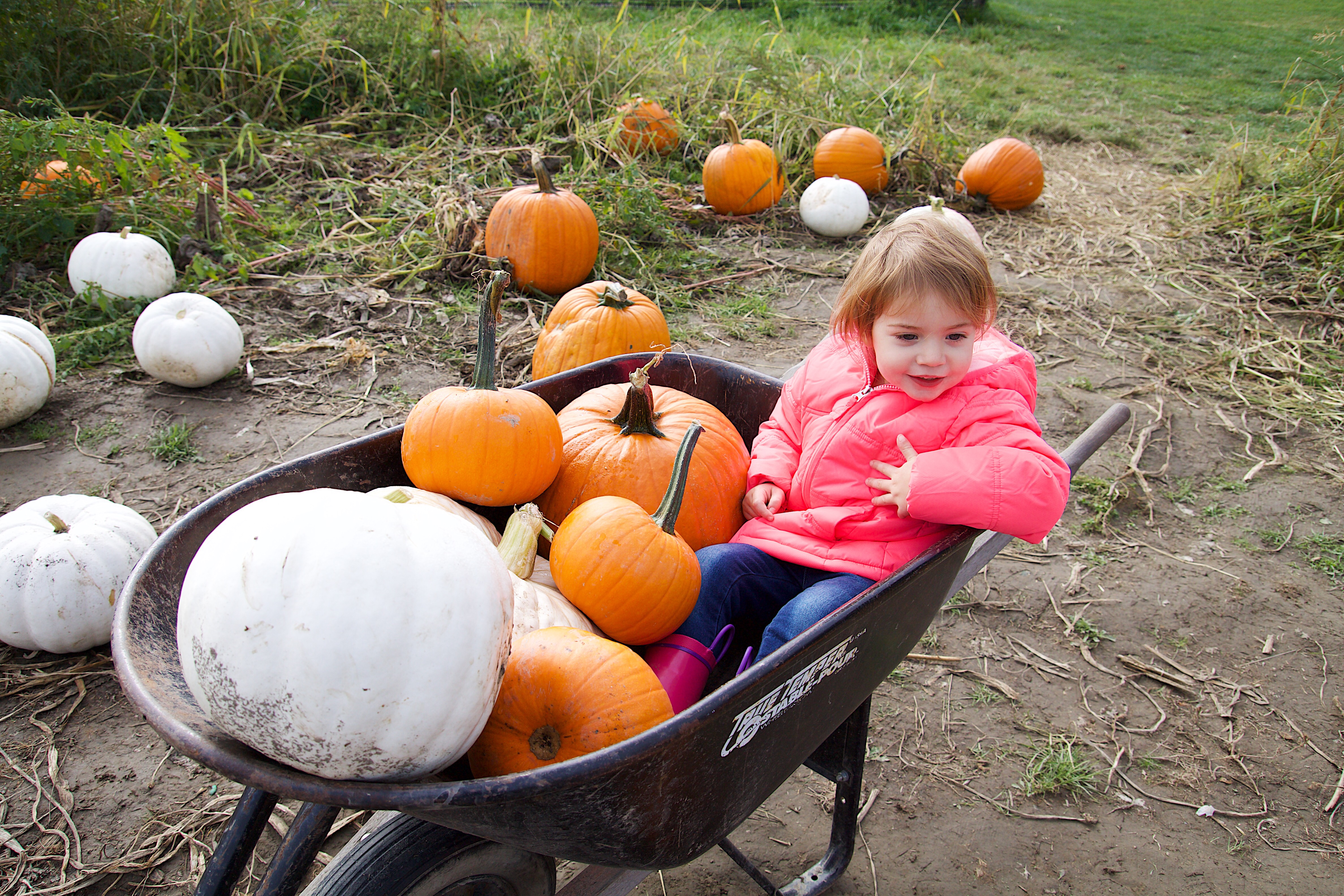 Ellie picked out our pumpkins while Lila slept in the stroller (forgot the baby carrier… whoops). She always loves picking them out and even got to ride in the wheelbarrow. Then, we of course had to get some kettle corn as we’re all a little obsessed with popcorn. After all that was said and done everyone was too spent to do any of the fall festivities. Still worth the trouble as Ellie’s always excited to pick the pumpkins :).