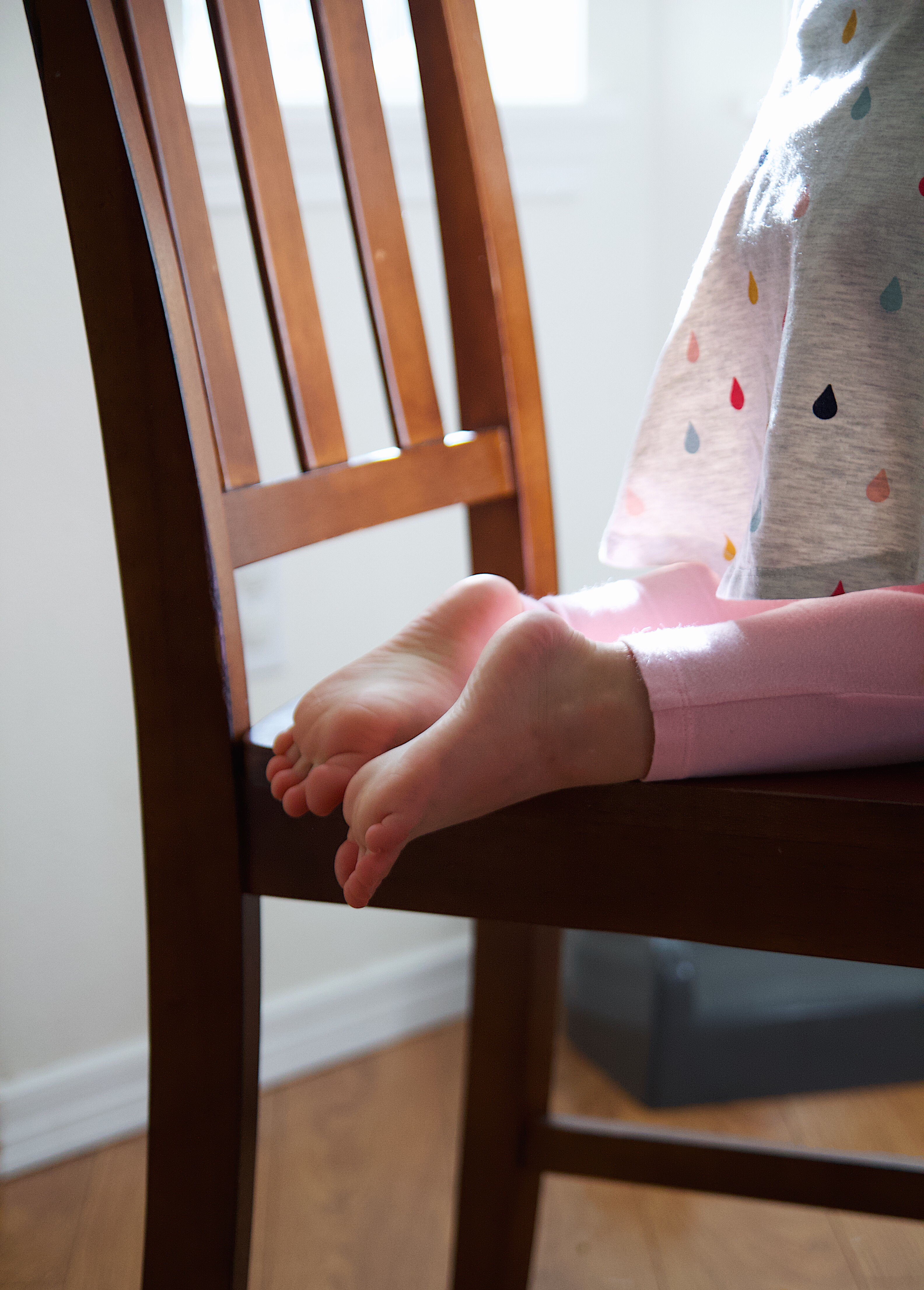 She recently decided she didn’t want a booster anymore (she hasn’t needed one for a while). Though, of course, since I took this photo I put the booster back so she can’t freely get up and down from the table while she eats.