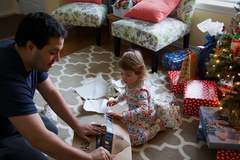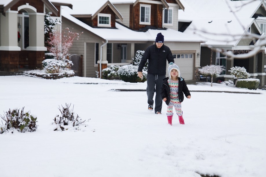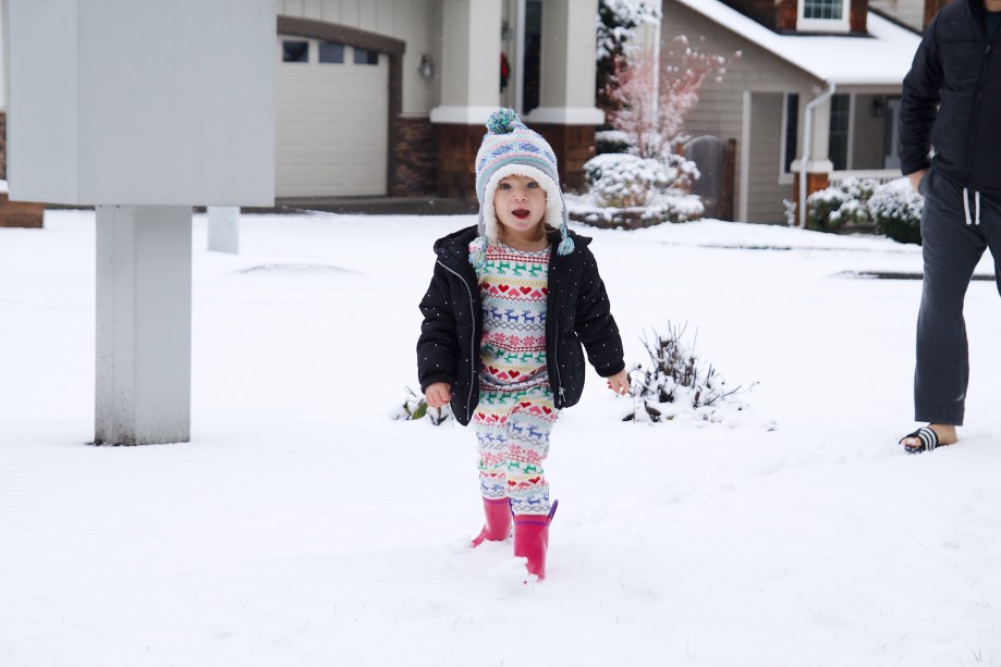 We spent Lila’s first Christmas at home. It was great to spend the day together, relaxing and moving slow. It started snowing on Christmas Eve just as we started driving to see Christmas lights. It was pretty magical to wake up to a white Christmas, especially in the Seattle area. I’ve had them before in Pasco, but I never expected that would happen here.