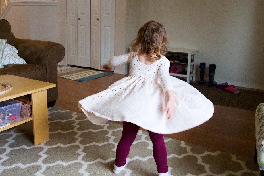 She loves dancing and twirling. When I asked if she wanted to do dance, gymnastics or soccer, I thought for sure she’d choose dance. She chose gymnastics, which she is loving. She still dances around the house all day and I love finding her busting a move. Maybe it’s better she didn’t pick a dance class because then she can dance anyway she’d like. I’m sure we’ll try one next.