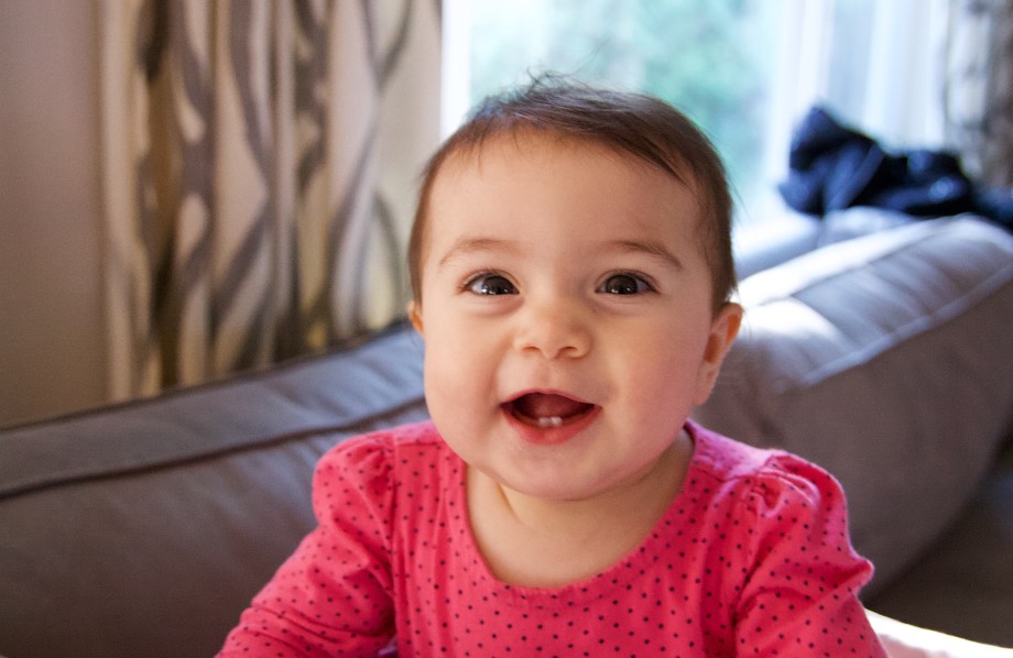 That’s what this baby is (90% of the time). She lights up the room with that smile of hers and she’s silly just like her big sis. And just look at those two little teeth showing off :).