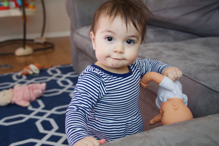 Lila would say this is her baby, but it’s actually Ellie’s. She just plays with it more than Ellie. Lila loves playing with dolls and stuffed animals and giving them kisses and it’s just the sweetest thing.