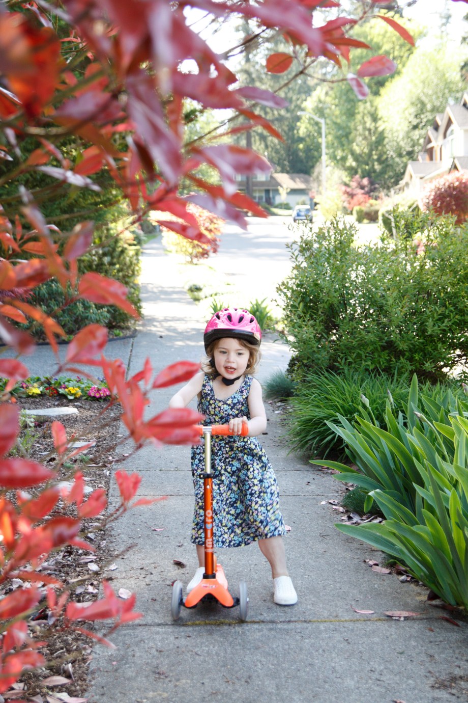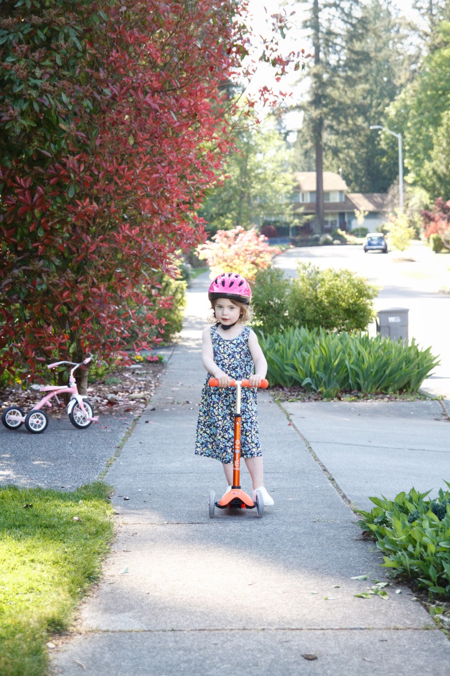 She’s getting pretty good at riding her scooter. Lots of knee and elbow scrapes, though. I should probably get some knee and elbow pads. It’s fun to go on walks with her now when she rides her scooter.