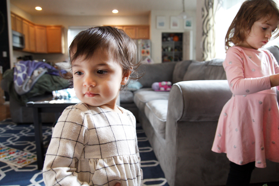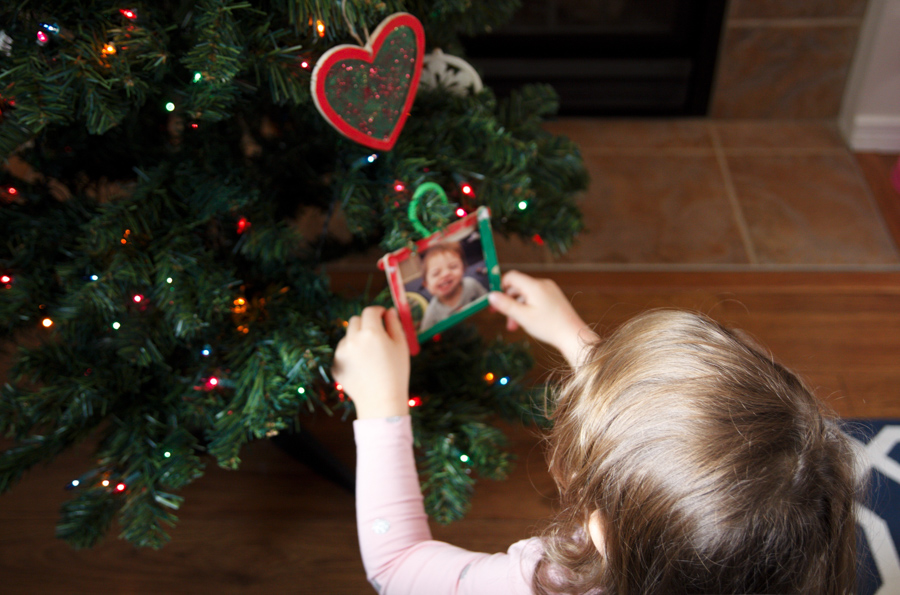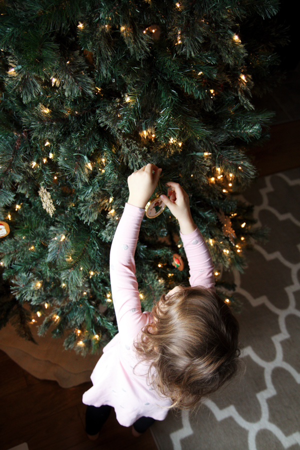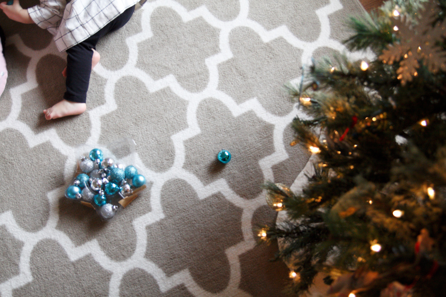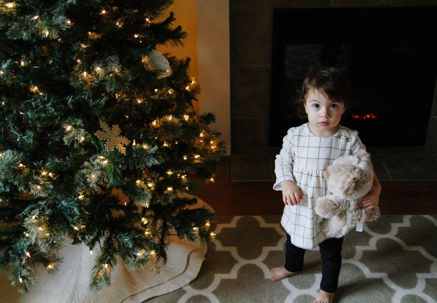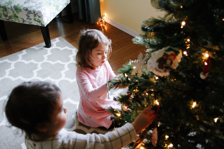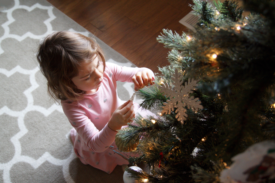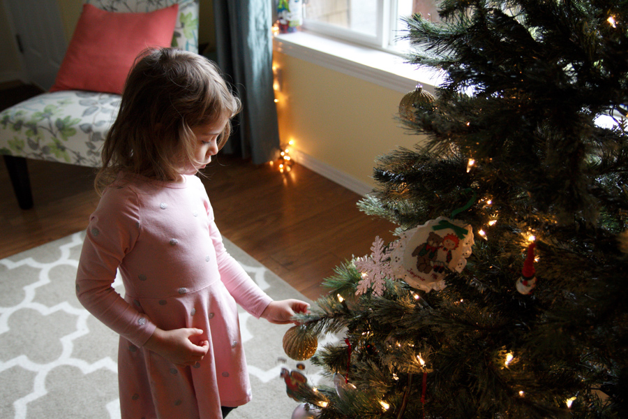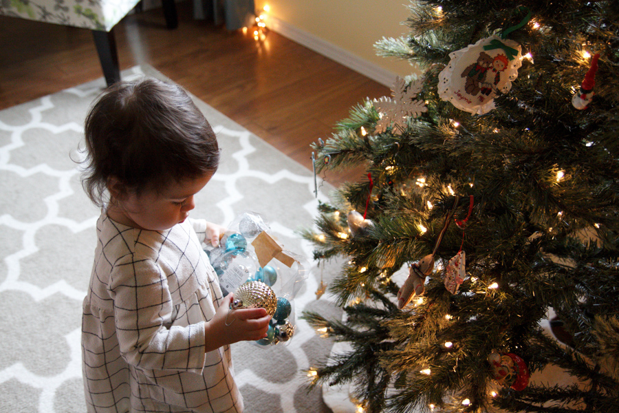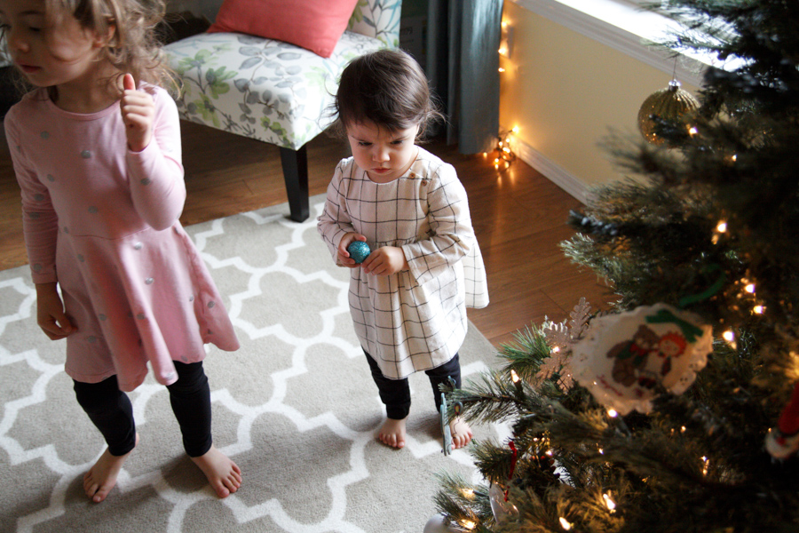 Ellie loved decorating the tree. Especially redecorating the tree as she kept taking the ornaments on a replacing them π. Lila was not that into it, but she liked playing with her bear and being around us.