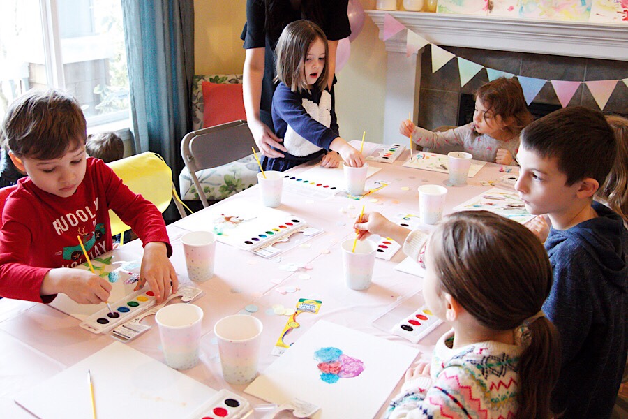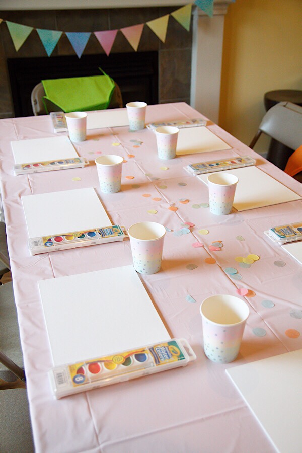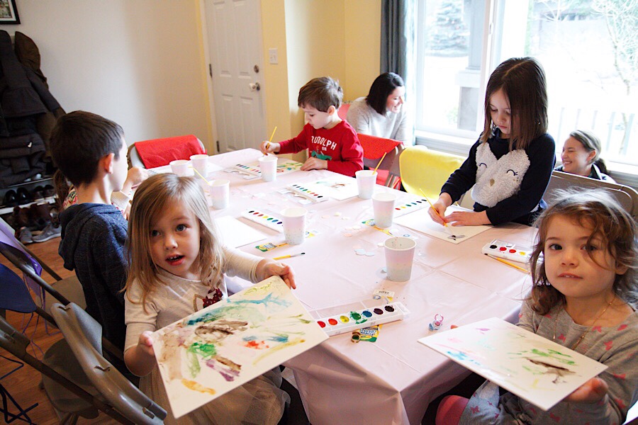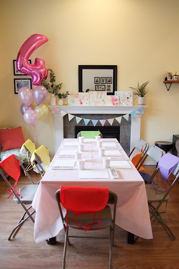 She wanted to do some kind of activity at her party so we decided on painting since she really likes arts and crafts. She also wanted a dance party so we did a watercolor & dance party for her 4th birthday. I think she very much enjoyed herself. Minus everyone singing happy birthday to her… she’s not a fan of that 😊. All in all, it was a success. I loved working with her on ideas of what she wanted and it was fun to decorate with paintings she created before the party (see the mantel picture). Love this sweet girl so much!