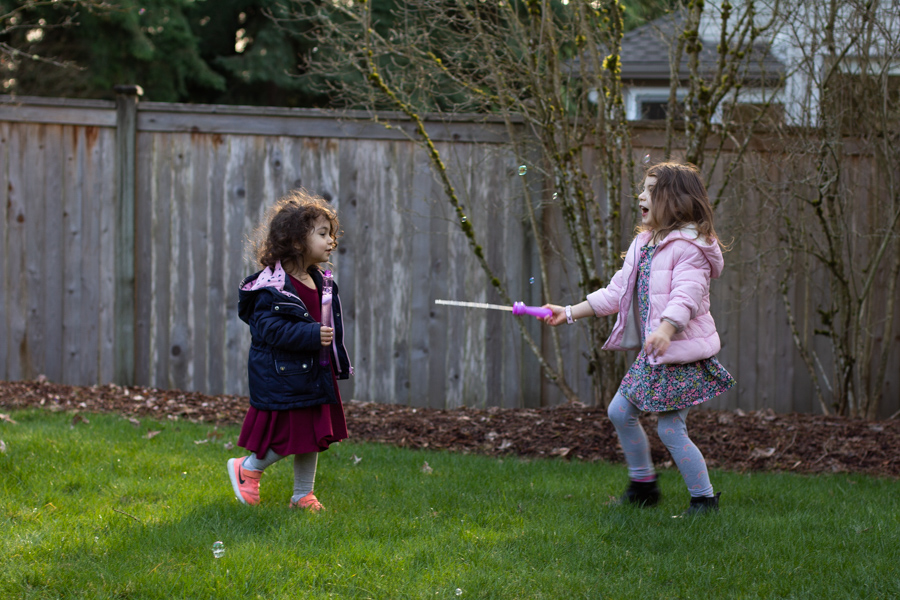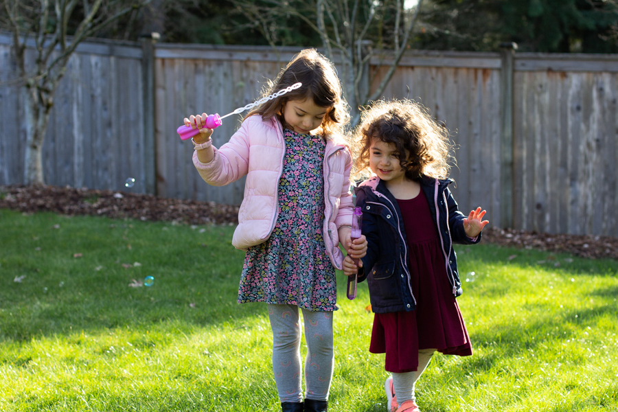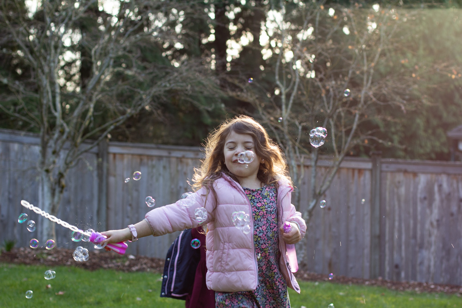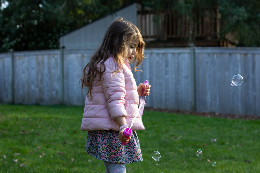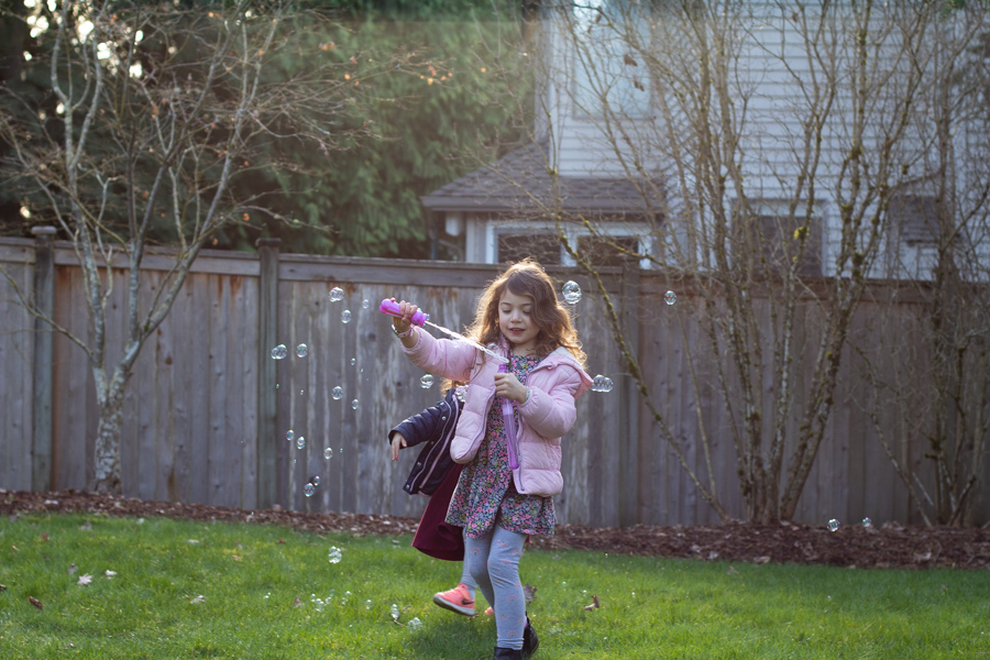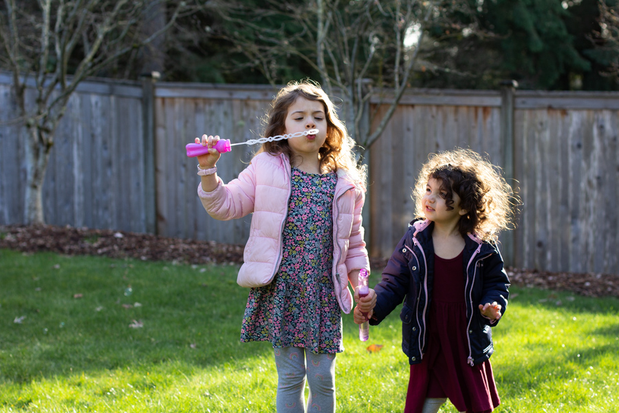 I always look back on these pictures as one of those last moments I captured with my camera before our world turned upside down. A carefree afternoon in beautiful light blowing bubbles. Thankfully the girls like blowing bubbles so much that it was an activity we did a lot and they never seem to tire of it.