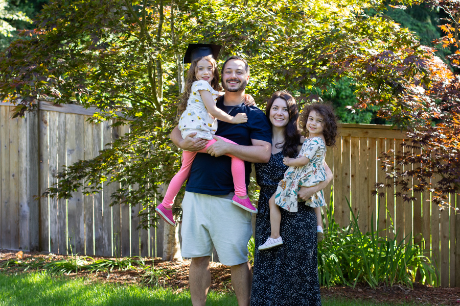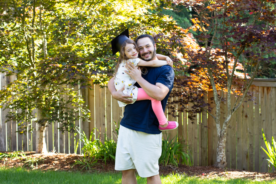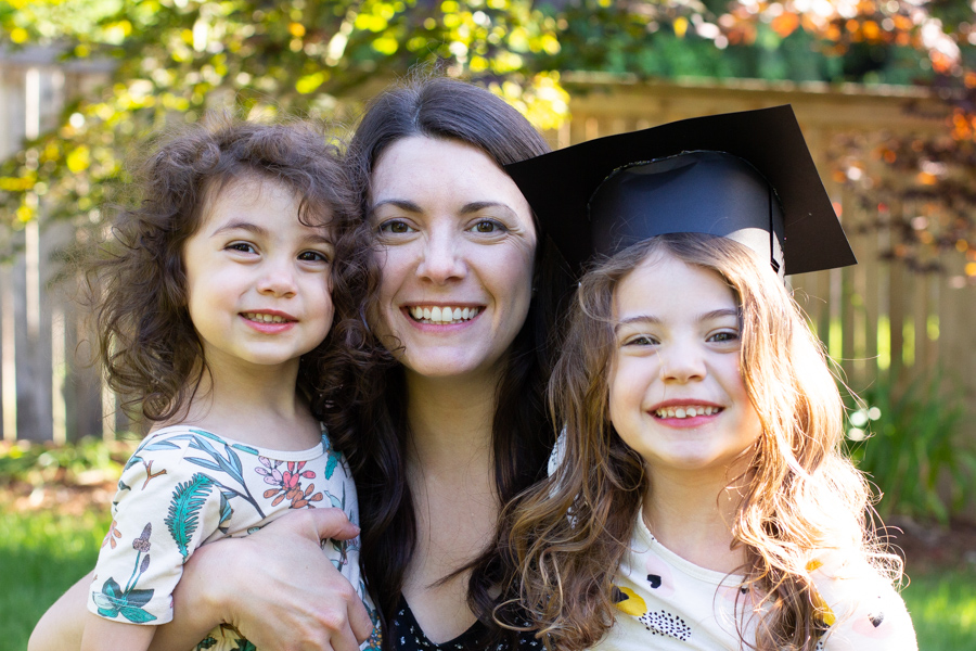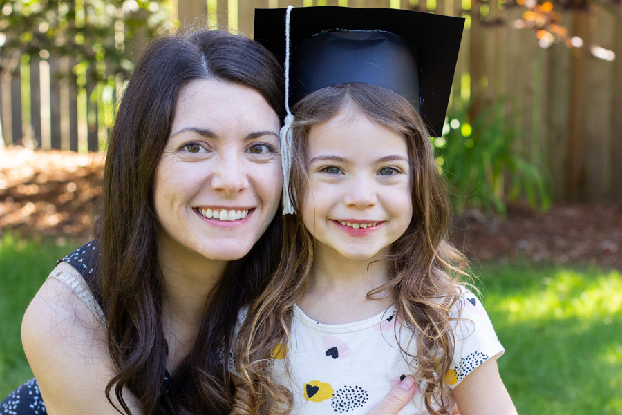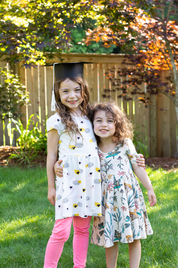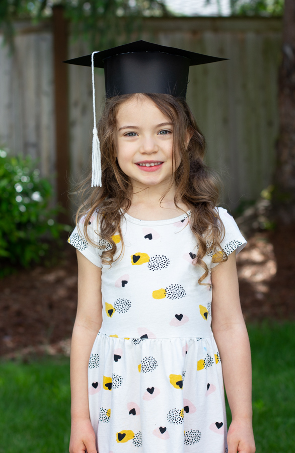 So proud of our girl for all her hard work in school and out. She’s very determined and has a love of learning which go really well together. She finished out the preschool year last year at home due to the pandemic, but we had a lot of fun either way. It was an abrupt ending to her preschool year with friends and she handled it so well. She got to do a graduation with her class mates virtually and we had a little family celebration at home with dinner of her choice outside and ice cream cake for dessert.