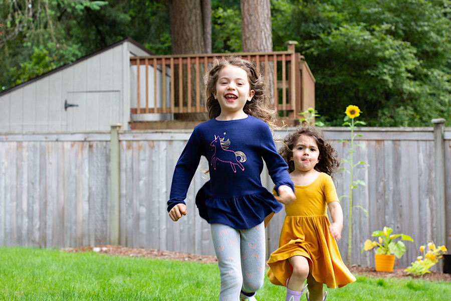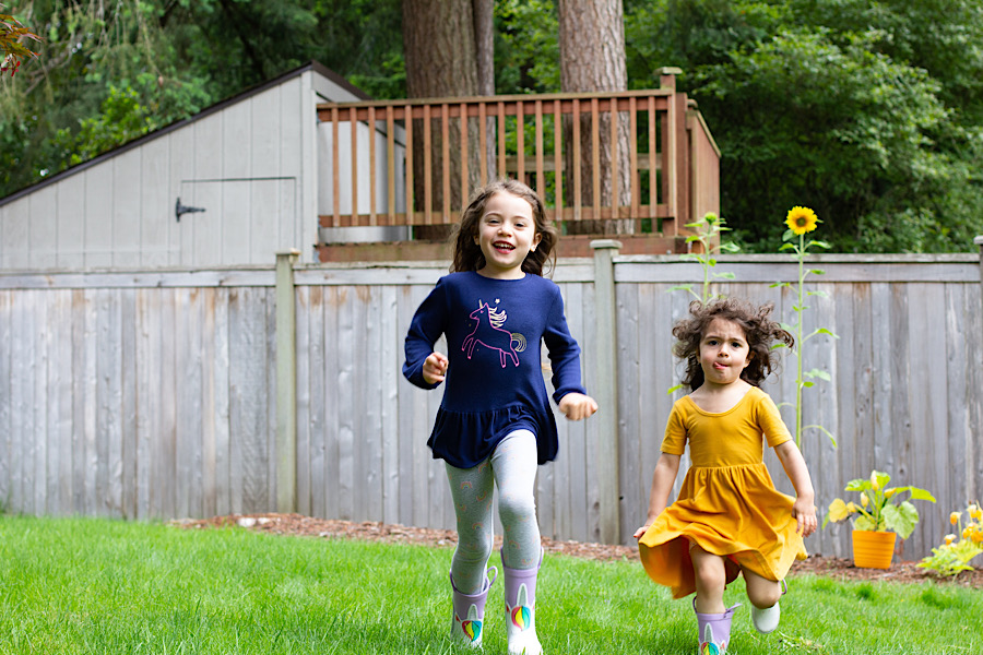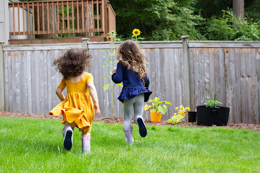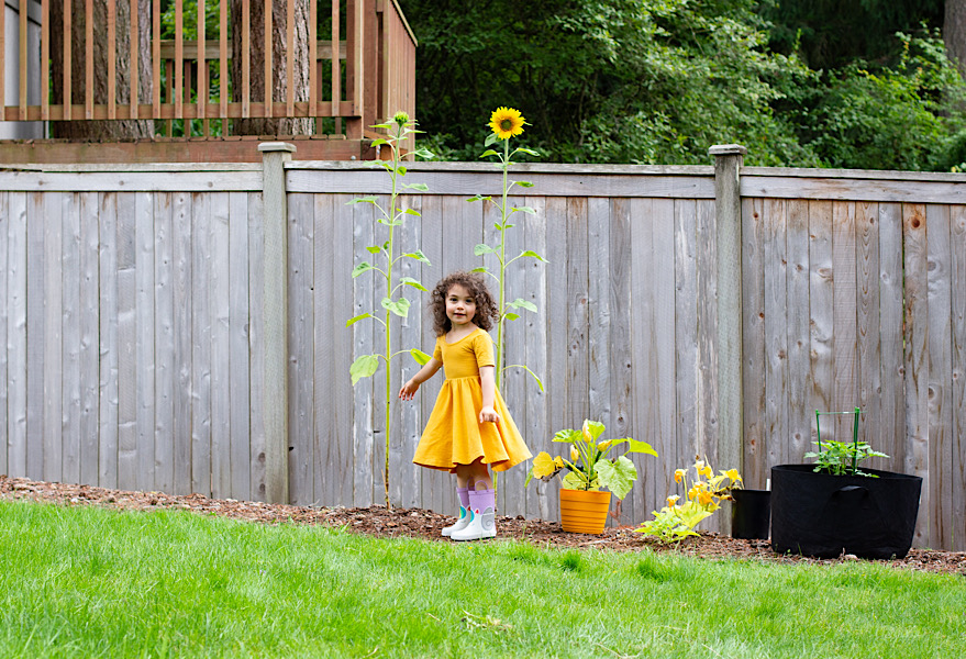 They each picked which sunflower was theirs and helped water it and watched it grow so we checked how they were growing a lot by standing next to them. And running at me because that’s more fun 😜.