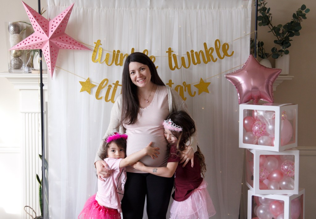 I was very hesitant to do a baby shower over zoom, especially since it was my third baby and I couldn’t see everyone in person, but my mom convinced me so I let her set one up ☺️. She did a great job as I’m sure it was not easy and sent all these cute decorations to set up as my background, which the girls helped me set up. The best part was that yummy cake that my mom sent us and being able to see some familiar faces. Thanks to everyone for making it special 🥰.
