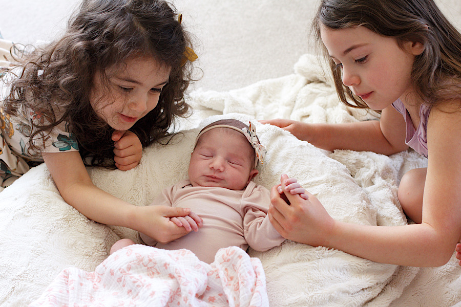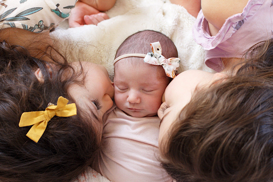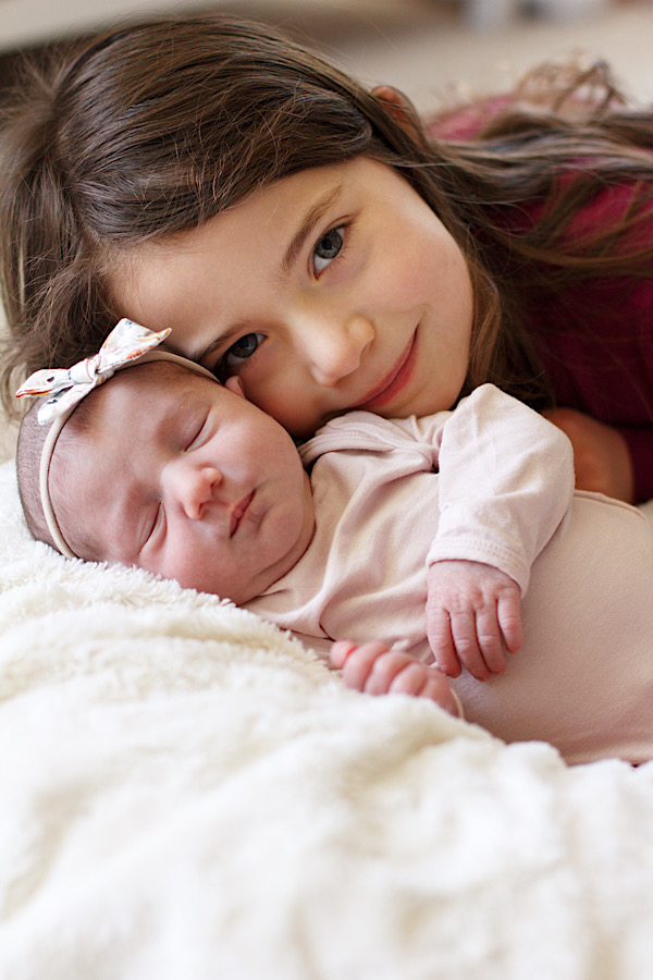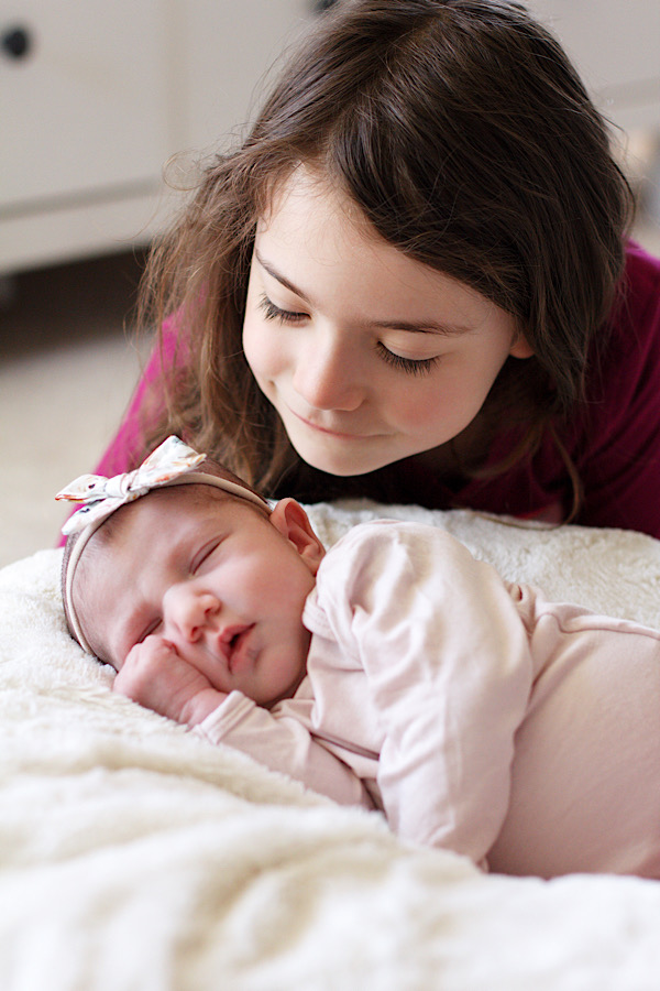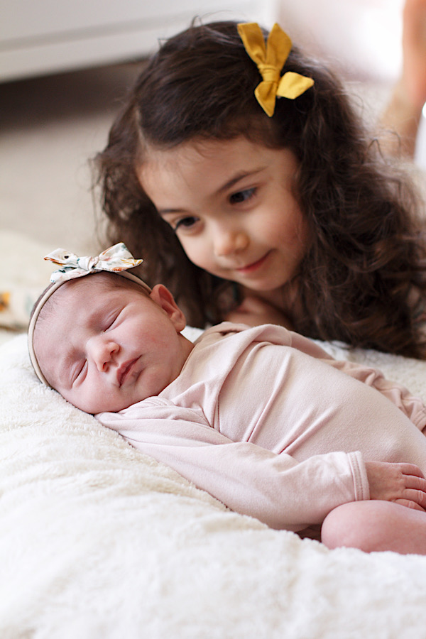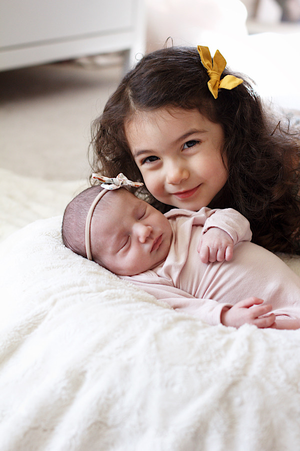 I decided to just take her photos myself, though we still don’t really have any of all of us 😬. Time to bring out the tripod ☺️. I managed to get Ellie and Lila in these, too, so at least we have sister pictures. I got her all dolled up on her due date and it was a beautiful day with lots of light.