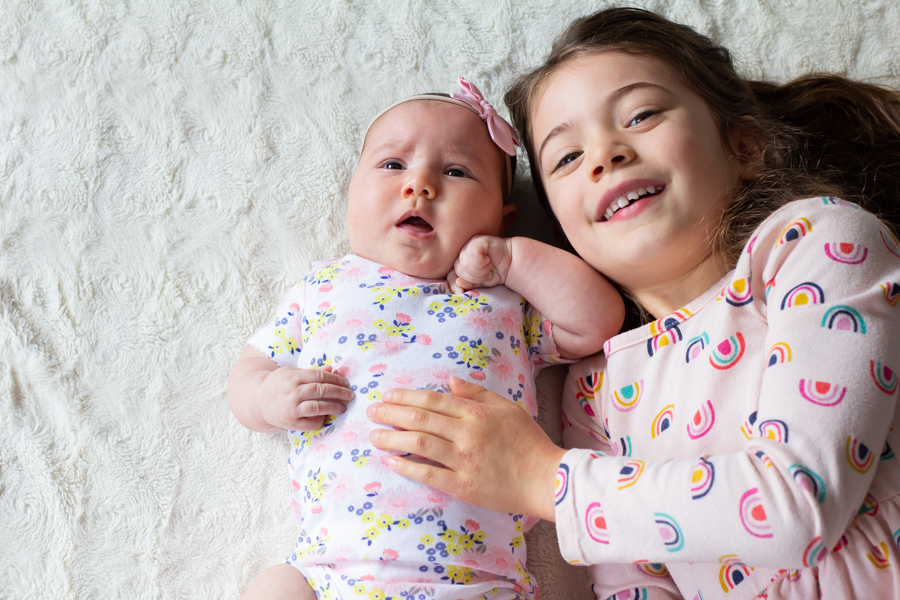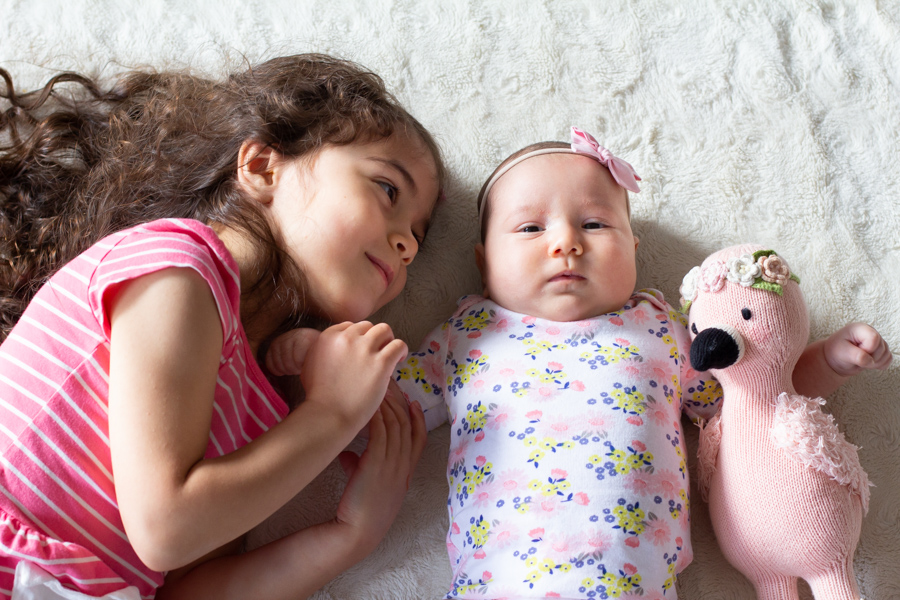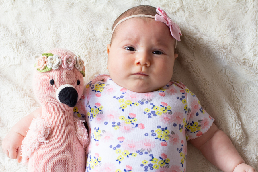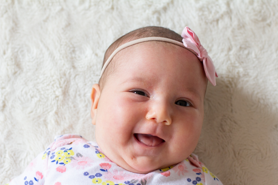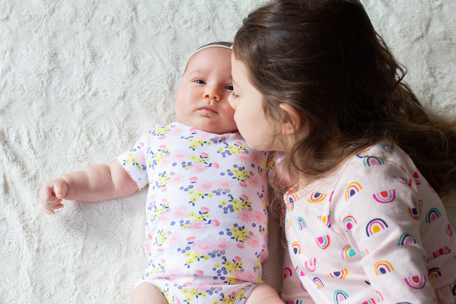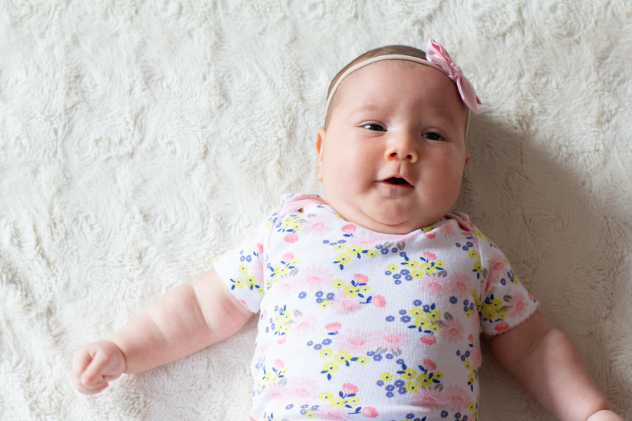 Happy 2 months, Olivia! She is so smiley these days and just the sweetest little thing (but also equal parts loud and dramatic when it suits her ;)). She has been cooing more and has grown many more rolls that we love to snuggle and squish. Ellie and Lila fight over who gets to hold her and kiss her all day every day so she’s still the most popular in our house. We love this squishy babe so much!