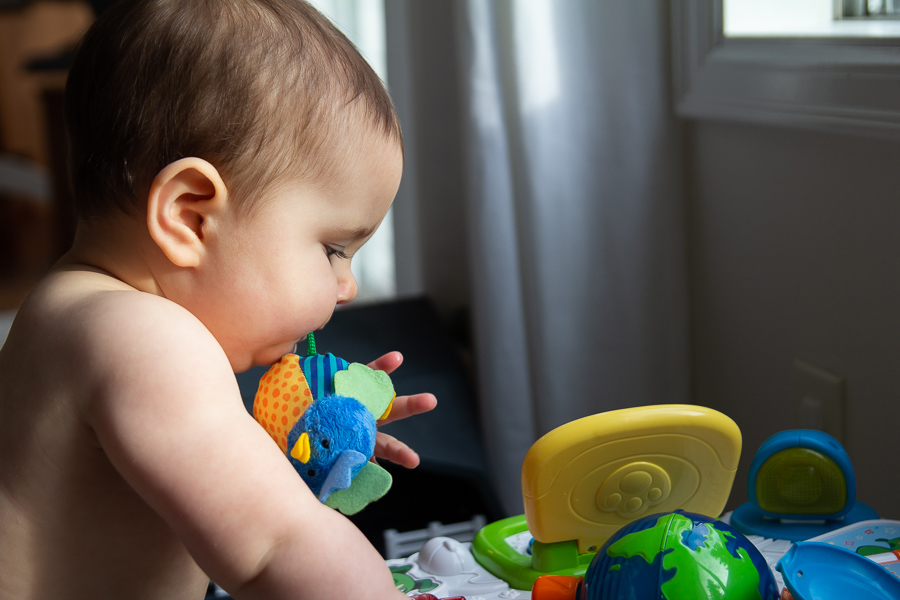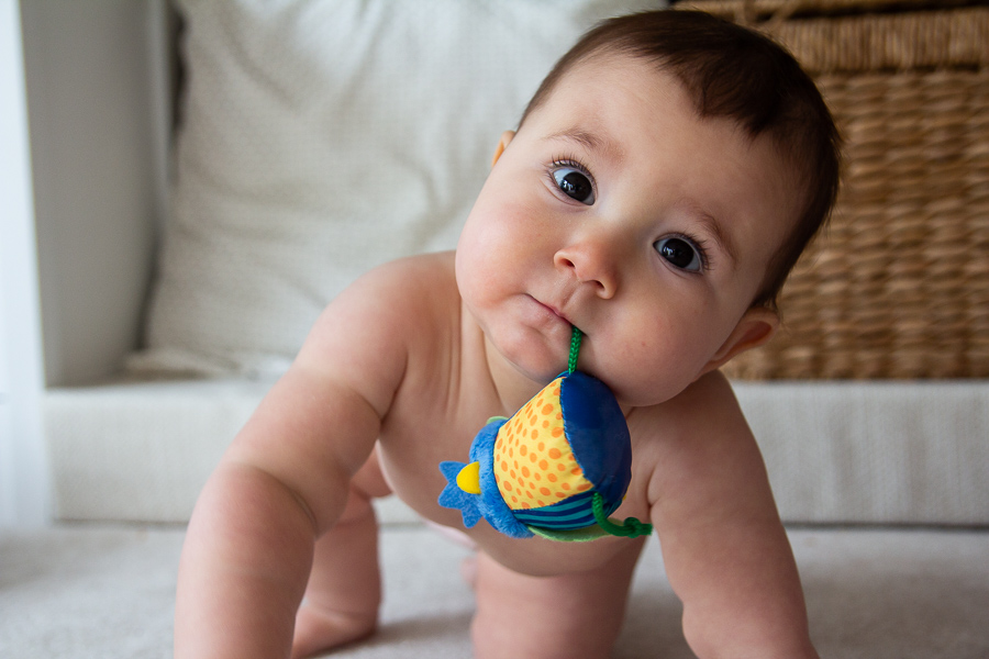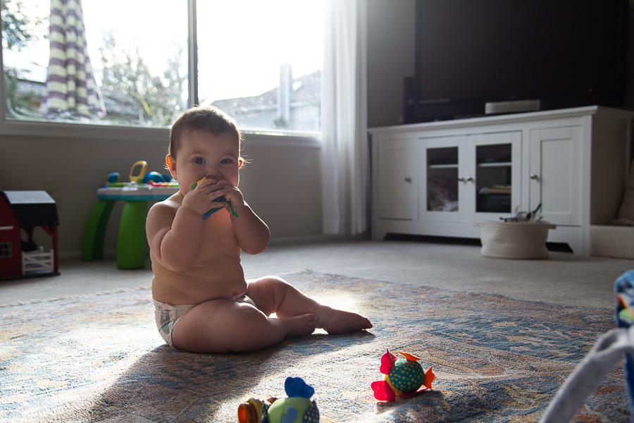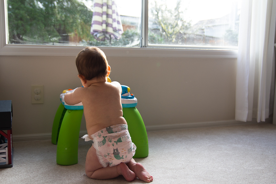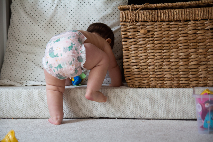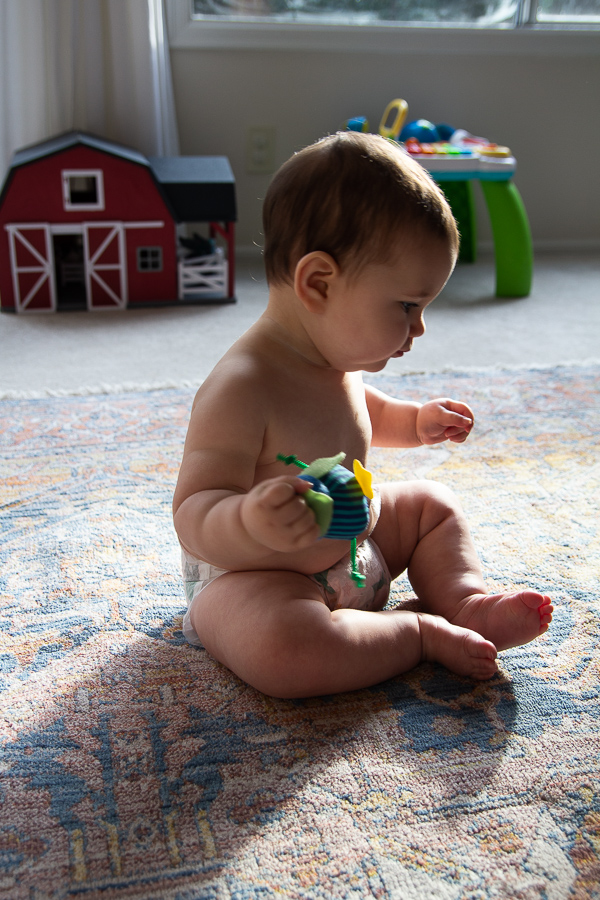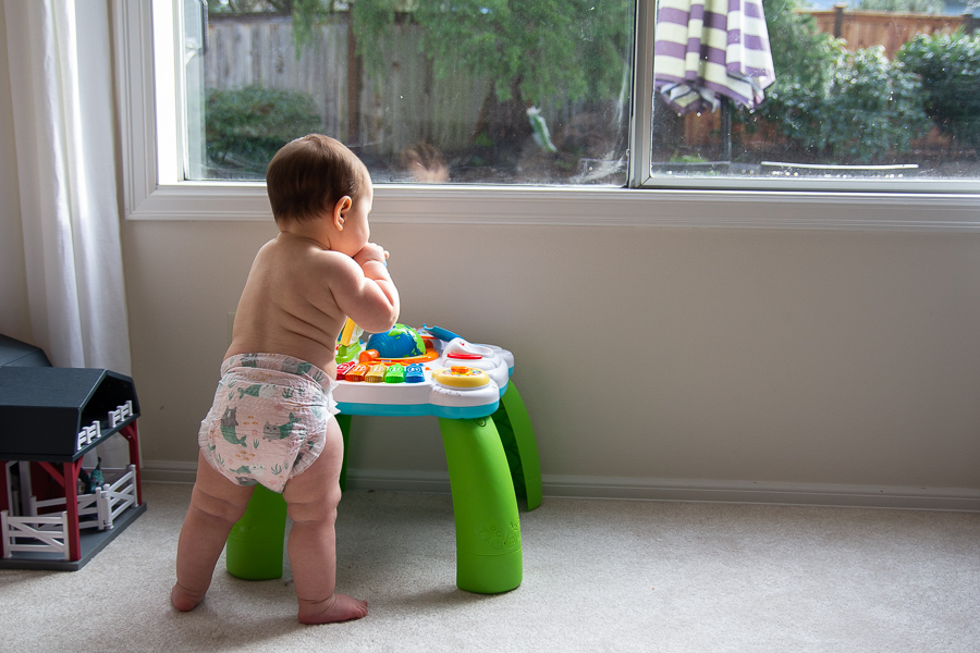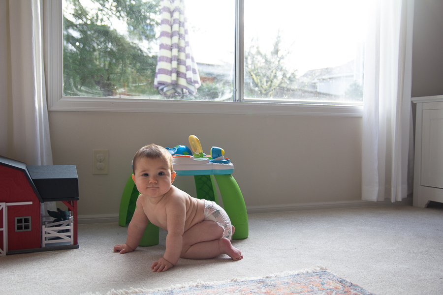 She’s been pulling up to stand a lot lately – finding anything she can to help her stand up. Also, I just love her baby squishy rolls.