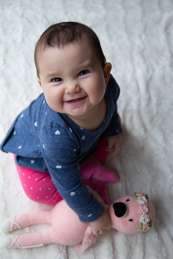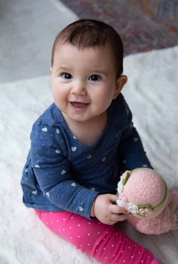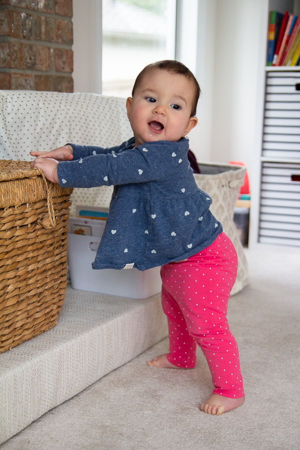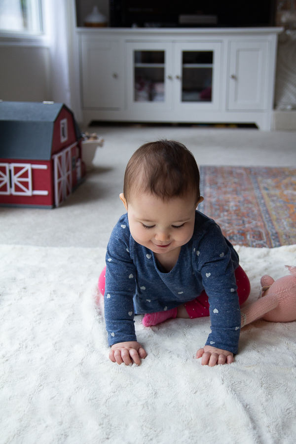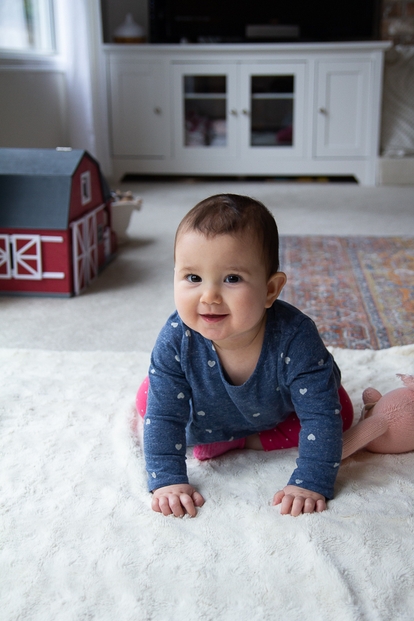Happy 10 months, Olivia! She is pulling up on everything, waving, clapping and exploring every crevice of our house. She is very silly and loves playing with her sisters. She’s been eating food now and finally seems to enjoy it now that I mostly gave up on purees. She loves to feed herself. She has one little tooth so far. She loves blowing raspberries, playing peek-a-boo, laughing and dancing. She’s growing so fast and we love her to pieces! 😍