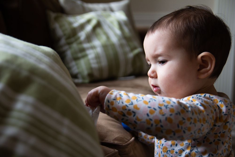 Happy 11 months, Olivia! She has been cruising all around and has become a super speed crawler. No steps yet and not a lot of interest in walking yet, though. She now says “mama” and “dada” and likes to try and mimic us. My favorite is when she tries to say “hey, boo” (we say that to her a lot) and she says “hi…” and blows a raspberry. She is very loud when she’s mad or just trying to hear her own voice. Her and Lila do a high-pitched squeal back and forth across the house to each other and it’s both super cute and hurts my ears :). She’s been much better with eating food and enjoys mealtime. Her favorites right now are raspberries, green beans, black beans, cheese and steak. She loves being outside and going for walks. She is very curious, loves to laugh and play and she has stolen our hearts.