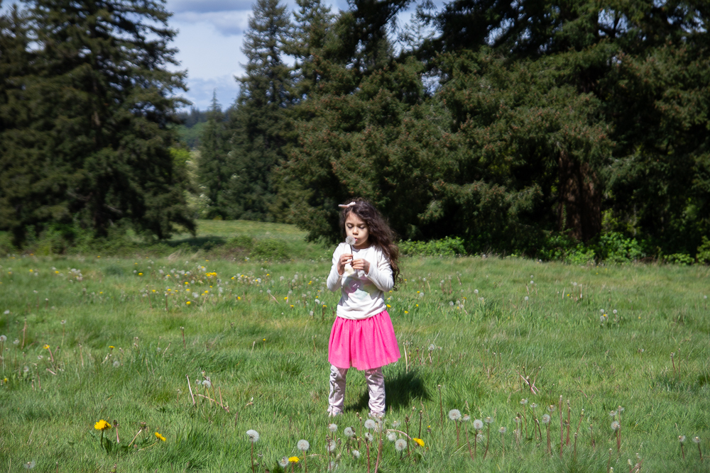 We pass by this meadow every day on the way to Lila’s preschool and it always looks so beautiful. The timing never worked out to stop because Olivia is always asleep, but one day she refused to do so and it wasn’t raining so we stopped and it was full of dandelions for Lila to wish on. She loves finding dandelions. It was near her birthday so we decided to go back a couple of days later to take her 5 year photos.