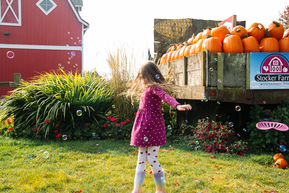 We hadn’t been back to Stocker Farms in a few years and it was a lot of fun (aside from all the smoke from the fires). I remember similar photos from the last time when Ellie and Lila were just tiny things. They enjoyed lots of games, giant bubbles, we worked together to make it out of the corn maze and of course, we picked out some pumpkins. Olivia had many favorites and kept tapping the ones she wanted (but we just went with the first one she picked).