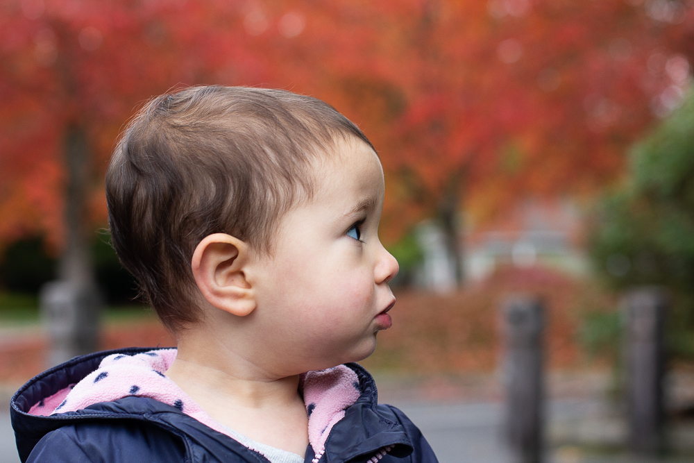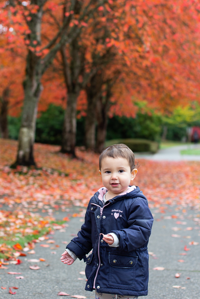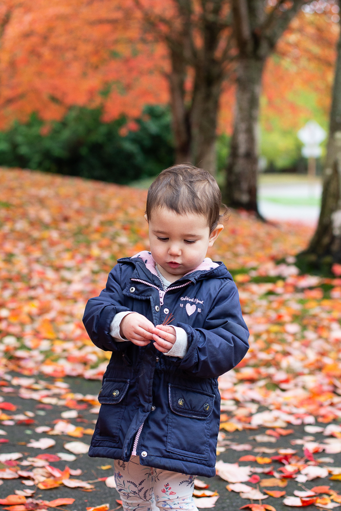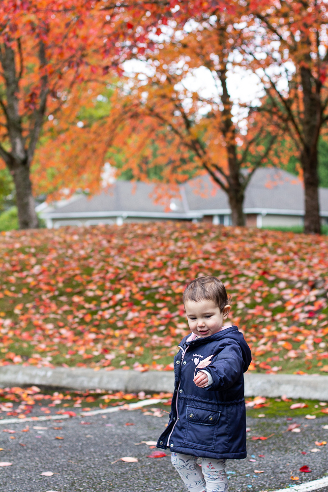 Olivia wanted to go for a walk and explore and find leaves. I wanted to take pictures of her with beautiful backdrop. I call it a win-win. She loves a good “weaf” as she calls them :).