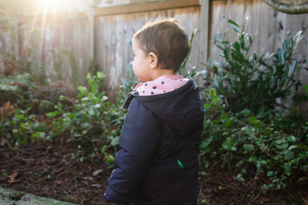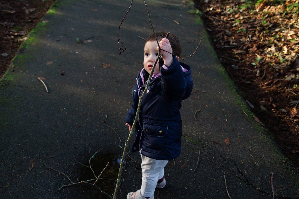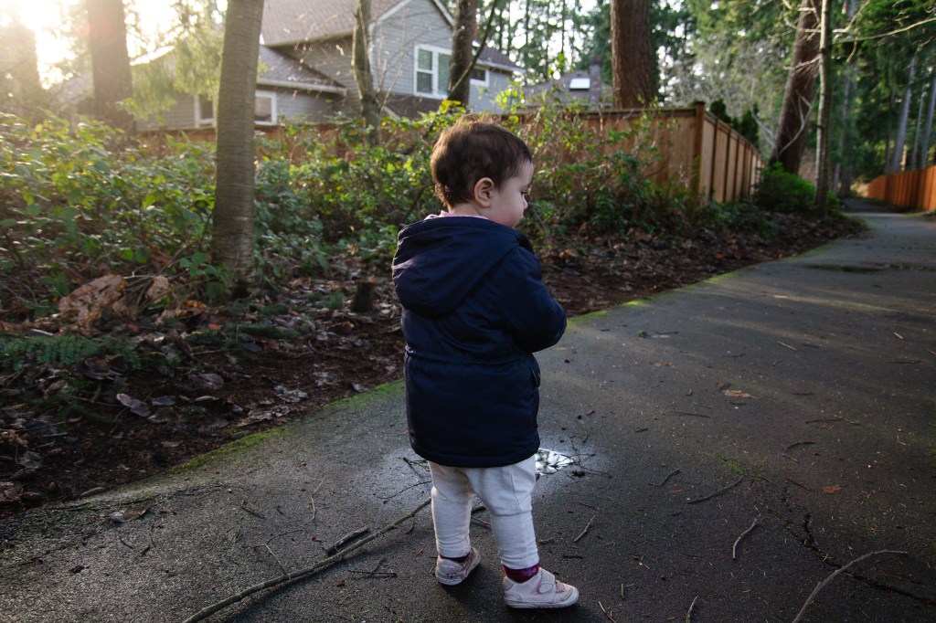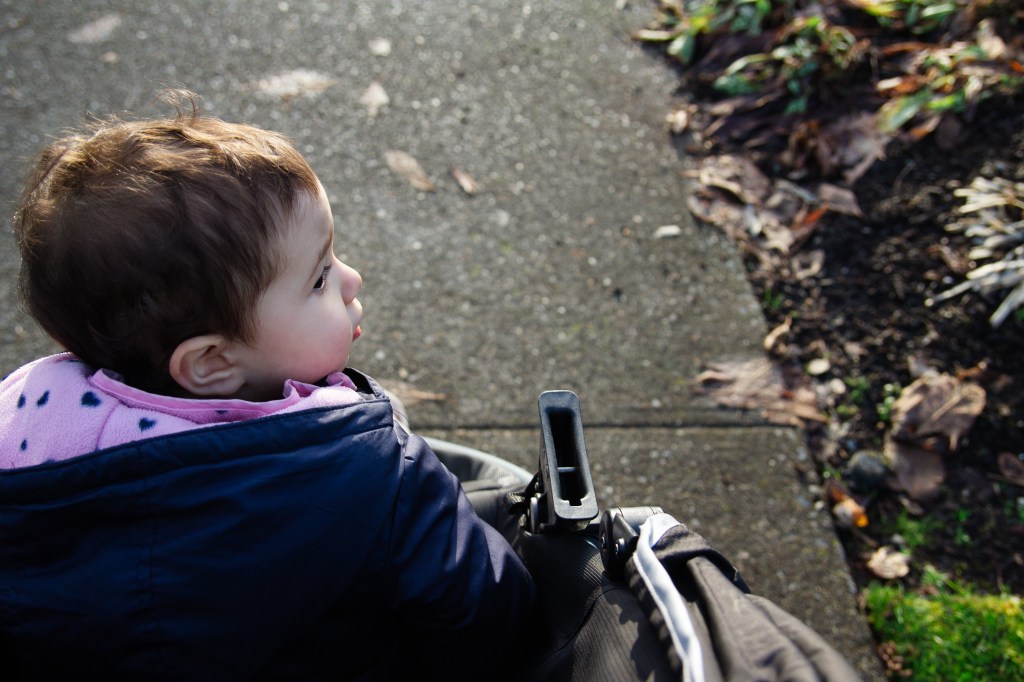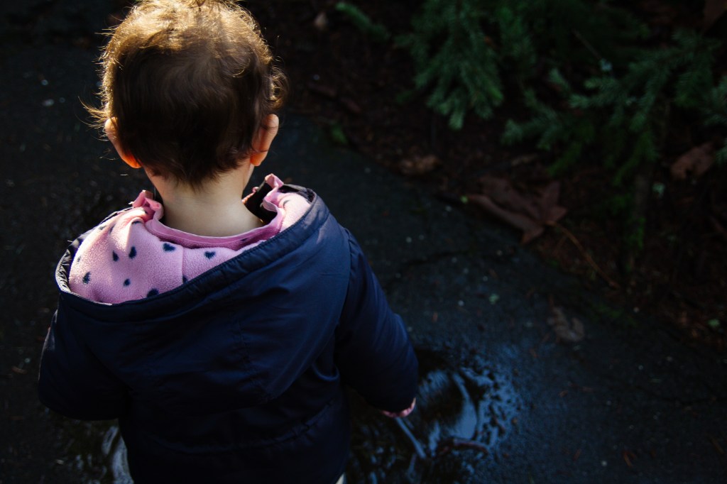 Olivia loves going for walks and finding the puddles to jump in. I love this age when they just want to explore everything and entertain is easy. We just go outside and her mood instantly lightens. I wish that still worked on the big kids haha.