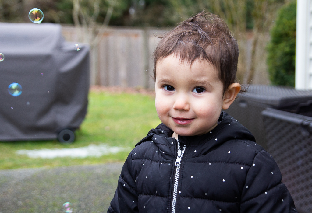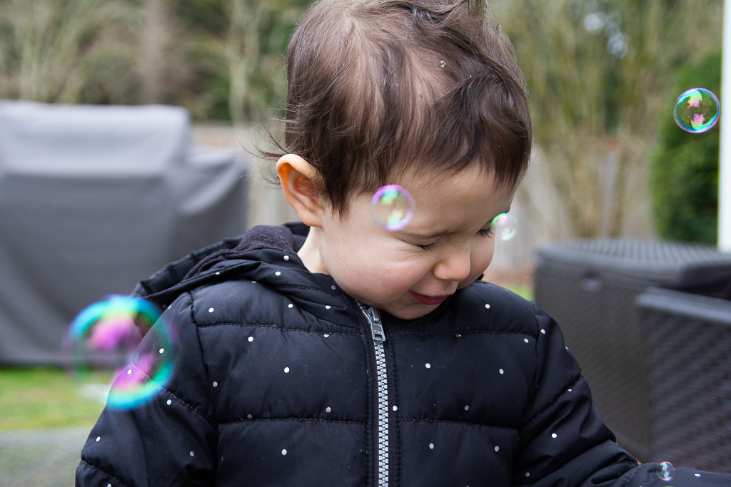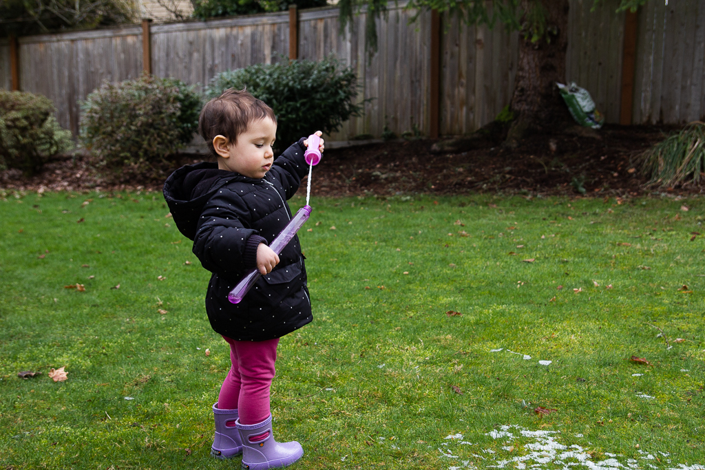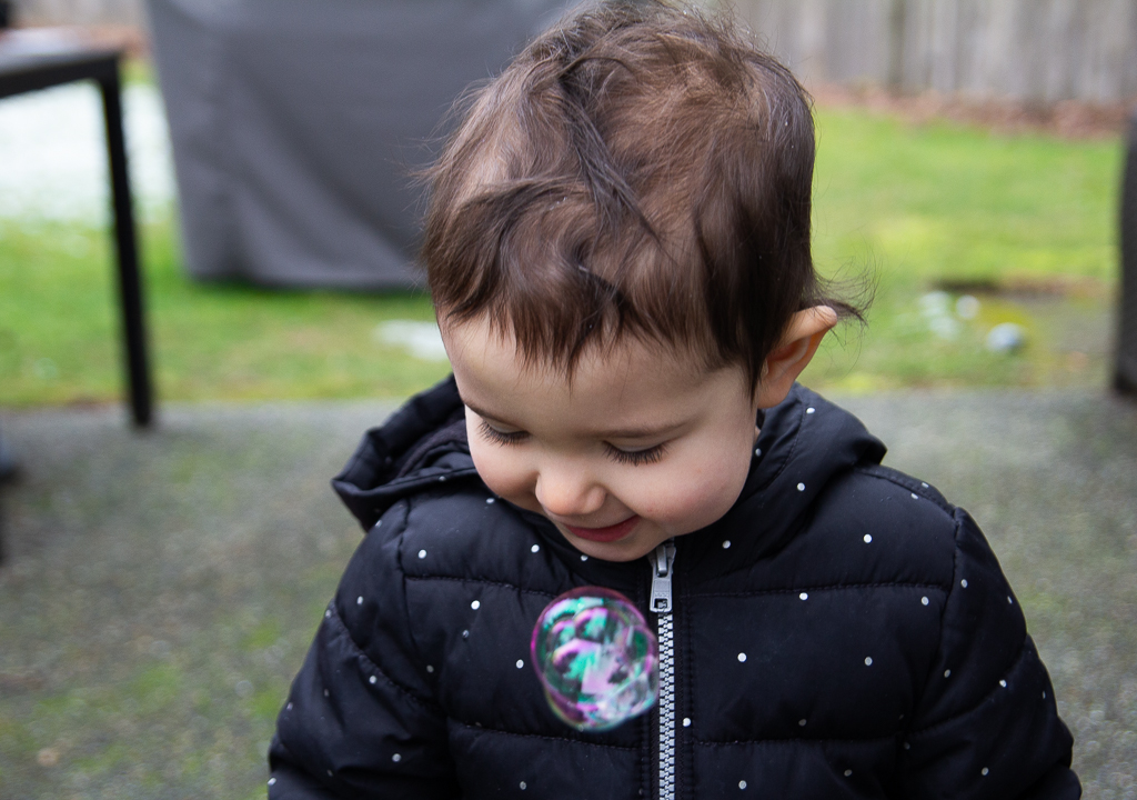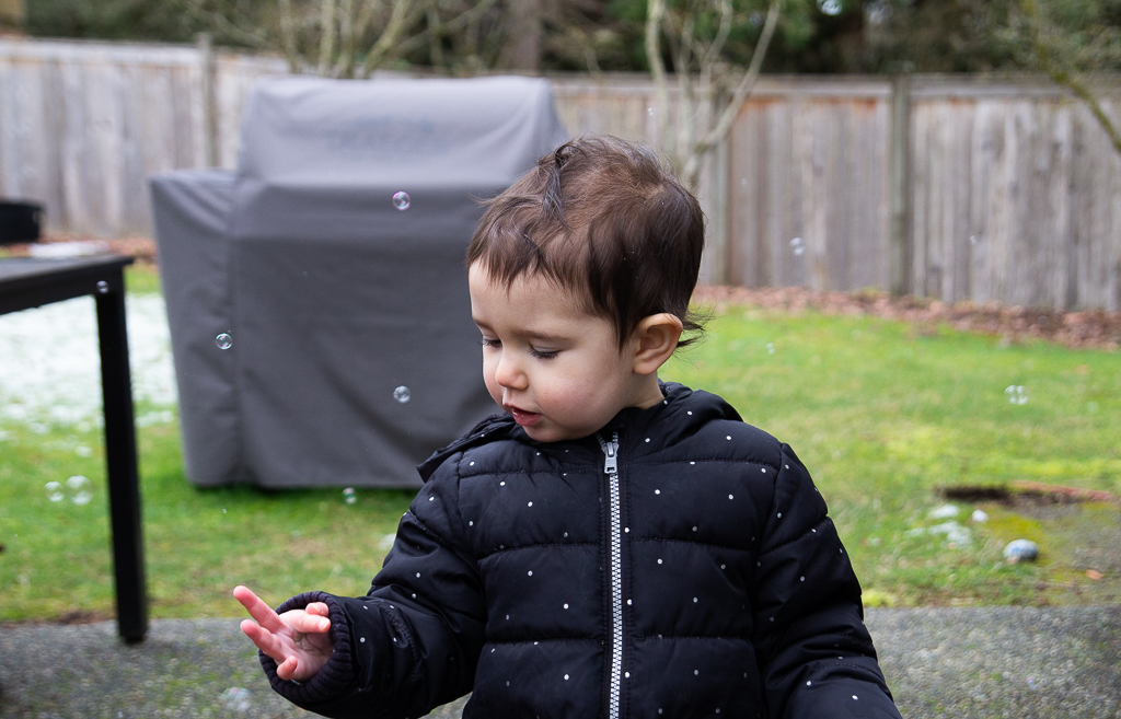 I love how bubbles are just the most magical, fun thing for toddlers and they want to have them every day no matter the weather. Easy entertainment :).