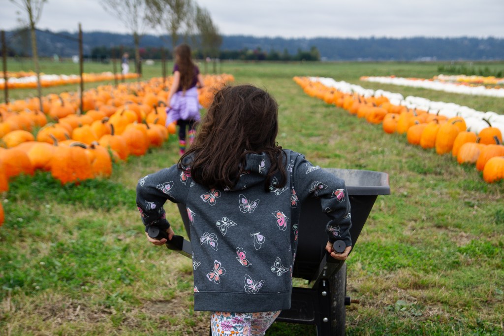 We went to the pumpkin patch with Bre and Steve and their two boys this year which was a lot of fun (and chaos haha). Olivia loved the wide open space and exploring every corner as she does, while Ellie and Lila mostly wanted to play games and hang out with Bodhi and Sammy. They all helped each other pick pumpkins and then insisted on helping Steve push the wagon full of pumpkins.