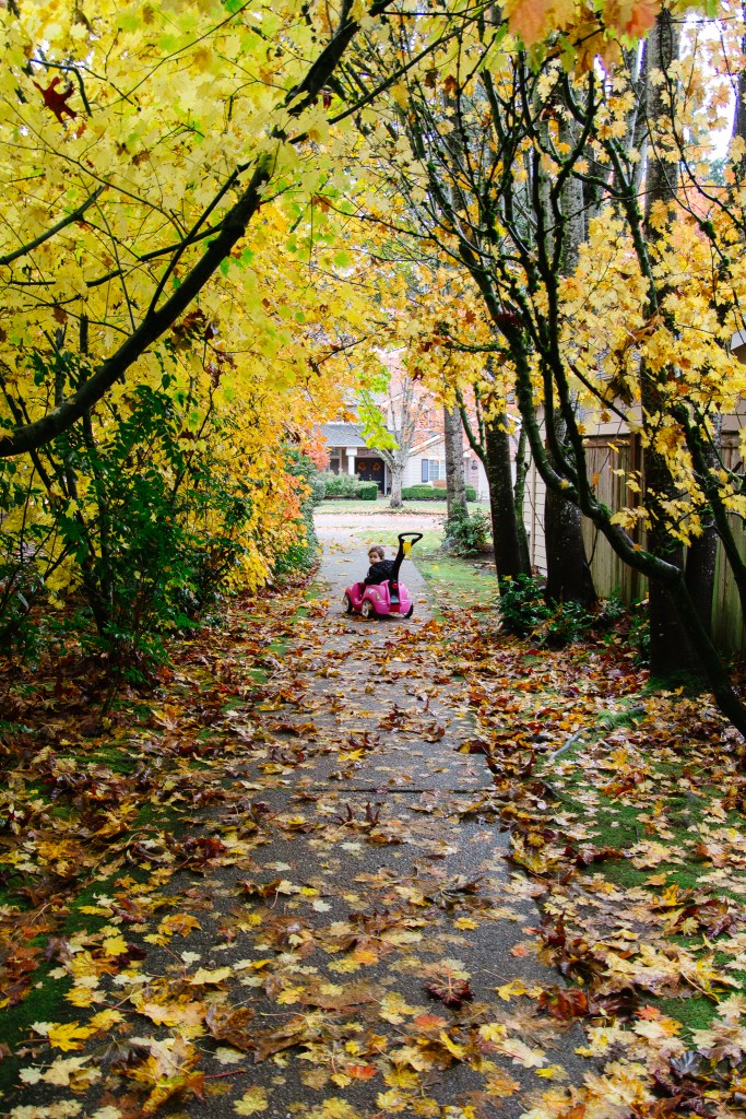 Olivia and I ventured out around the neigborhood next to us when the leaves were so beautiful. We spent the whole morning out there. She loves to explore and loves leaves!