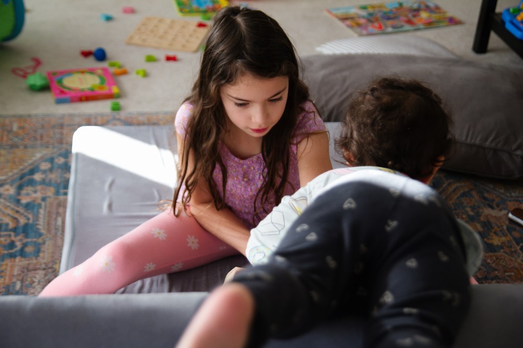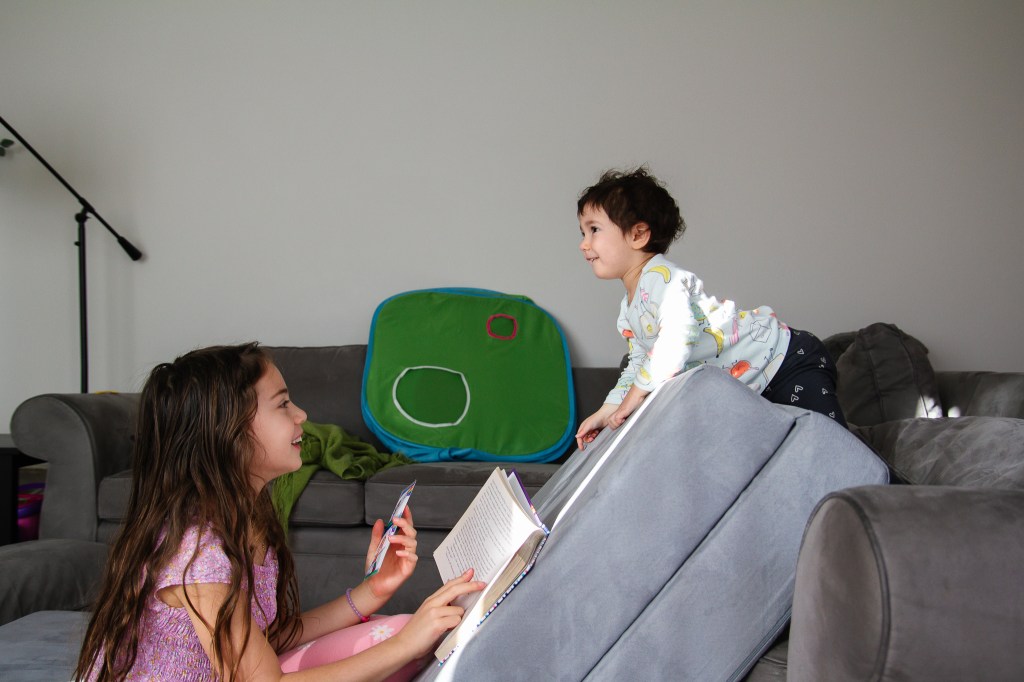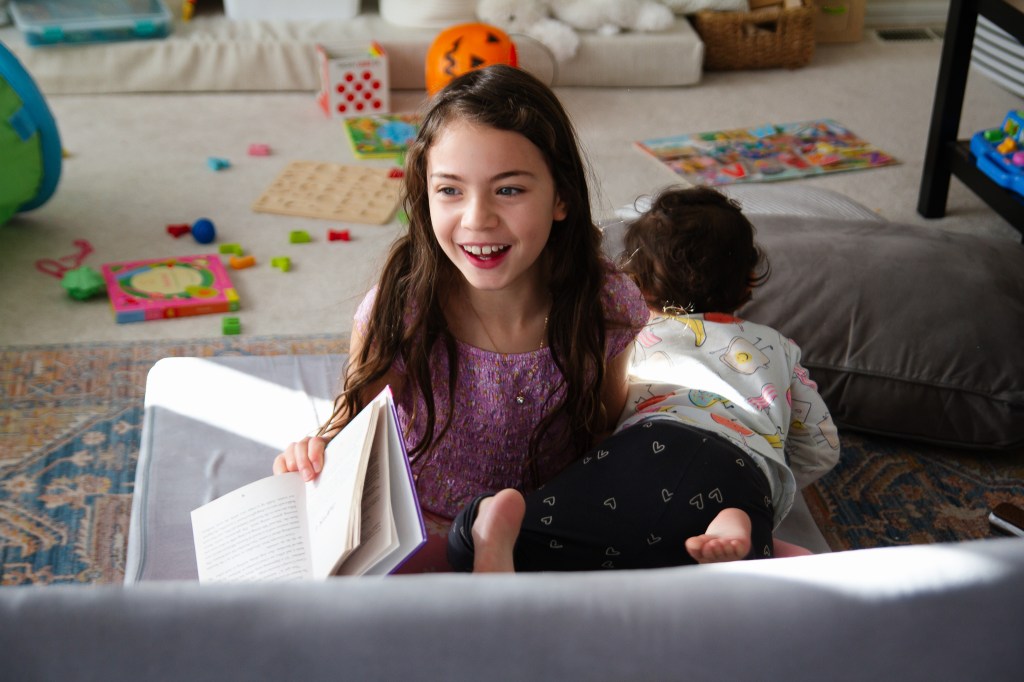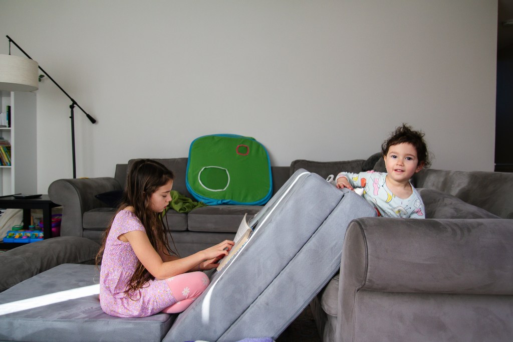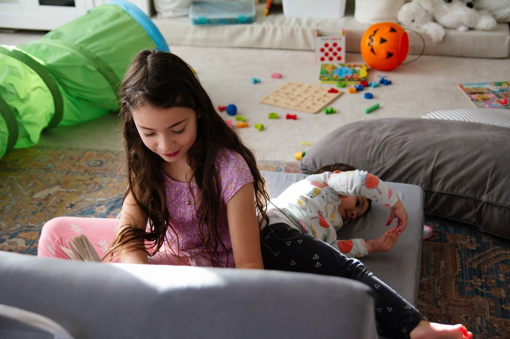 Ellie is always reading. She plopped herself right in the middle of a play area that Olivia and Lila created so it was only a mattered of time that her reading was disturbed.