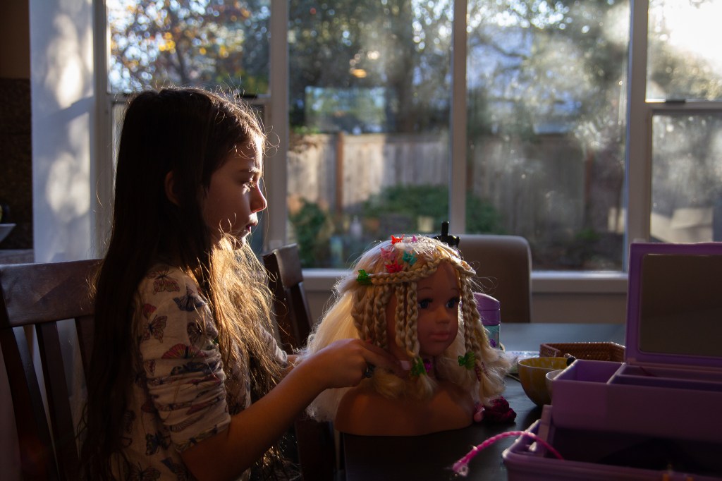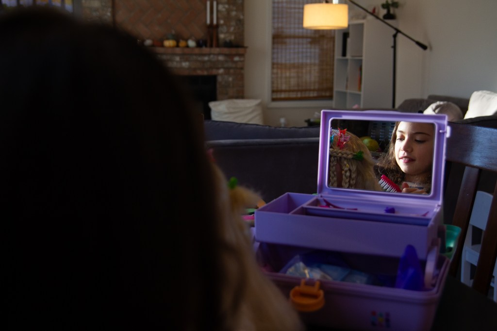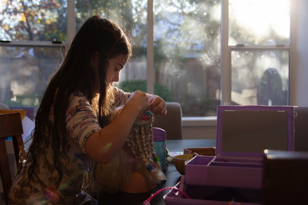 a doll hair salon and breakfast. Posted on November 24, 2023 by Jaymie Mayers 11.24.2023 Ellie doing her doll’s hair and Olivia just trying to eat breakfast. Share this: Click to share on X (Opens in new window) X Click to share on Facebook (Opens in new window) Facebook Like Loading... Related