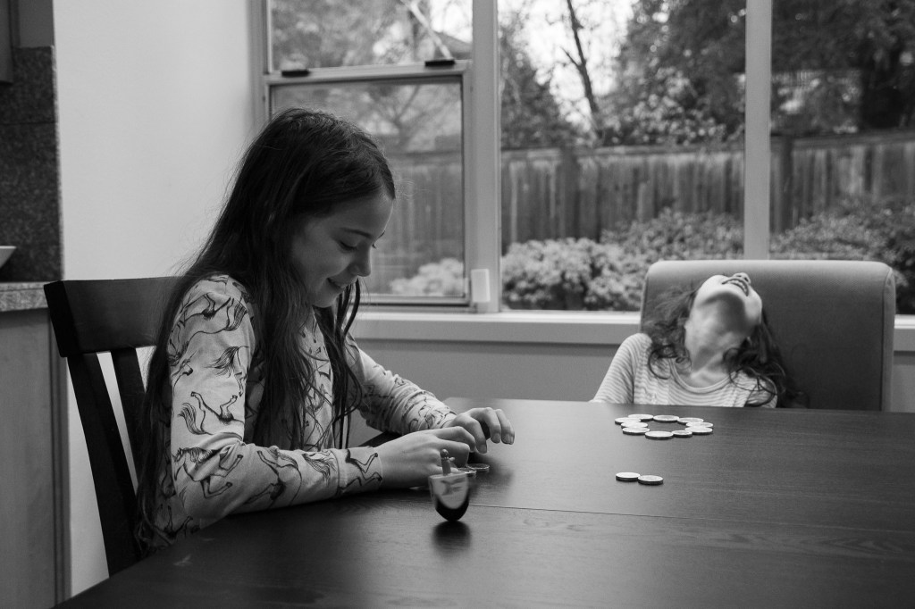 I realized I never posted these from last year. The girls got really into this dreidel game, singing some very loud made-up song.