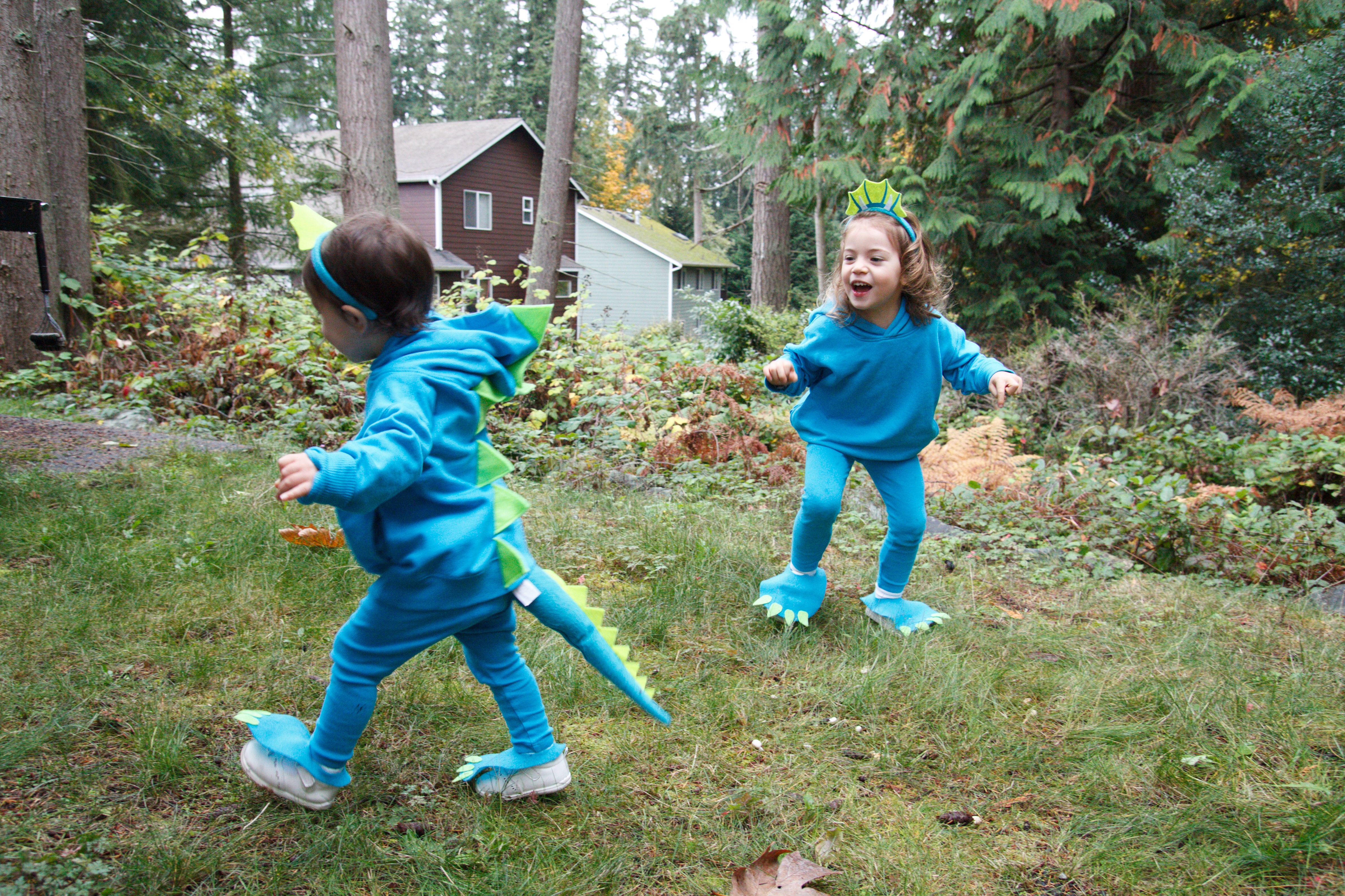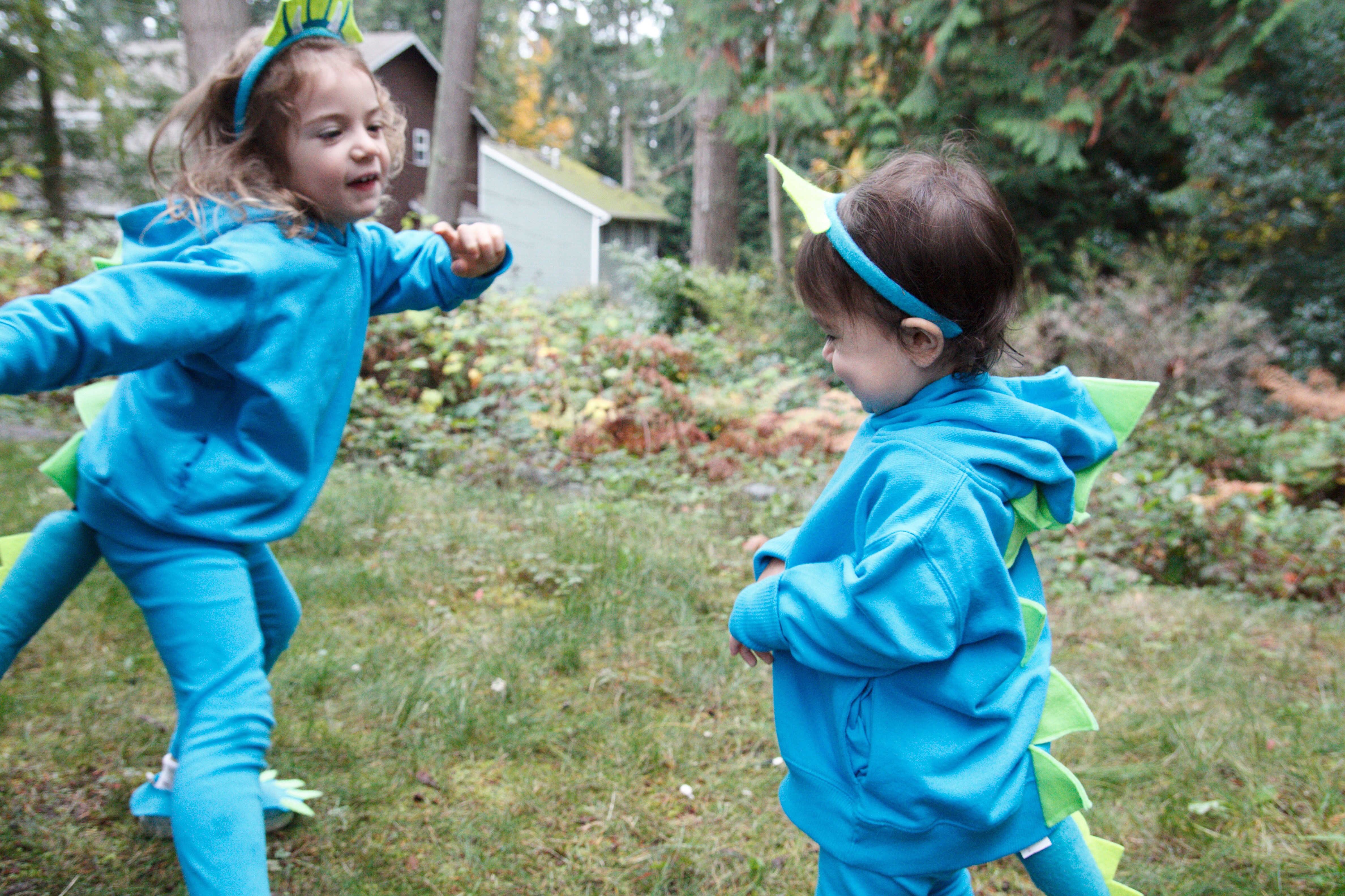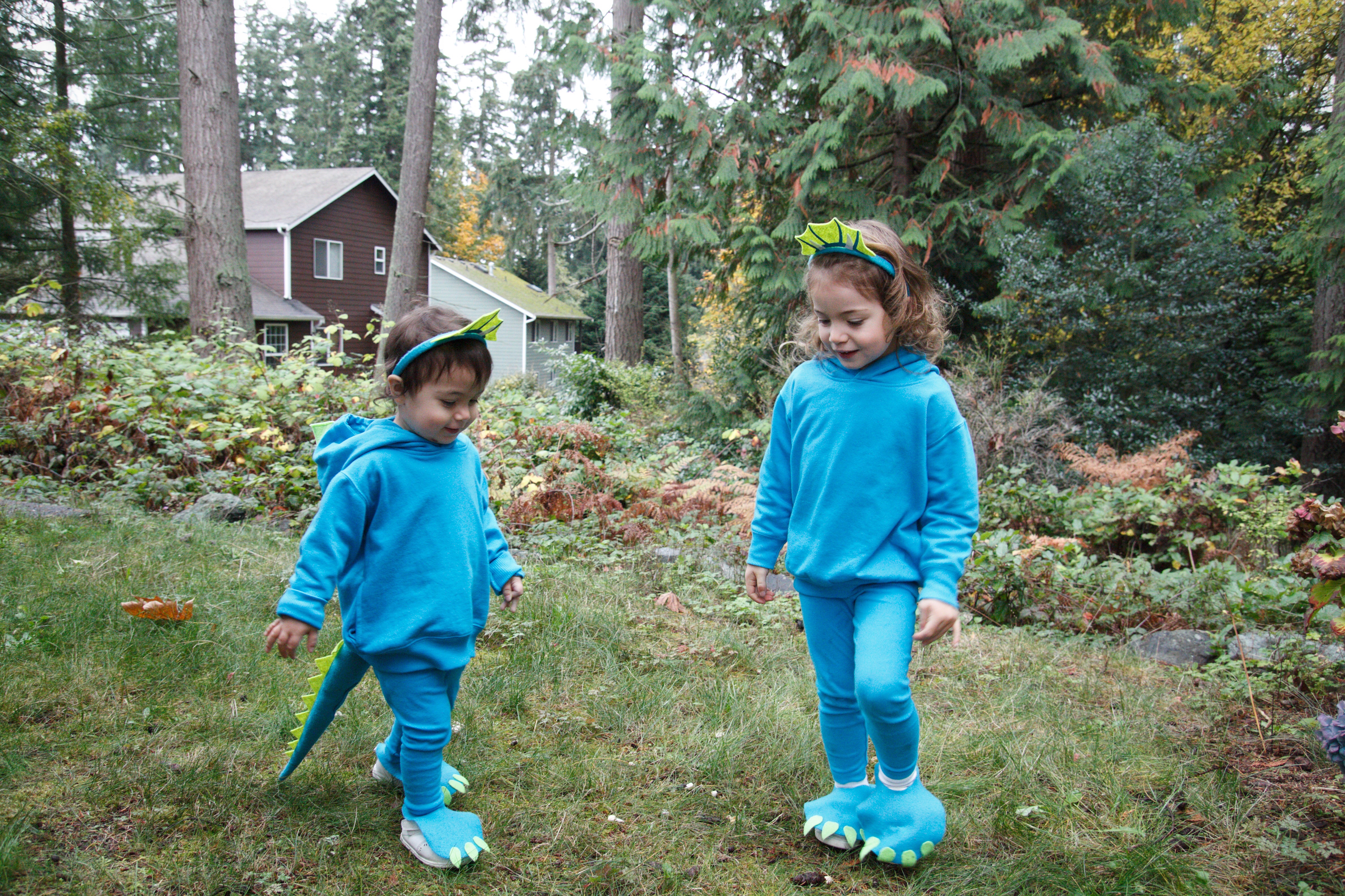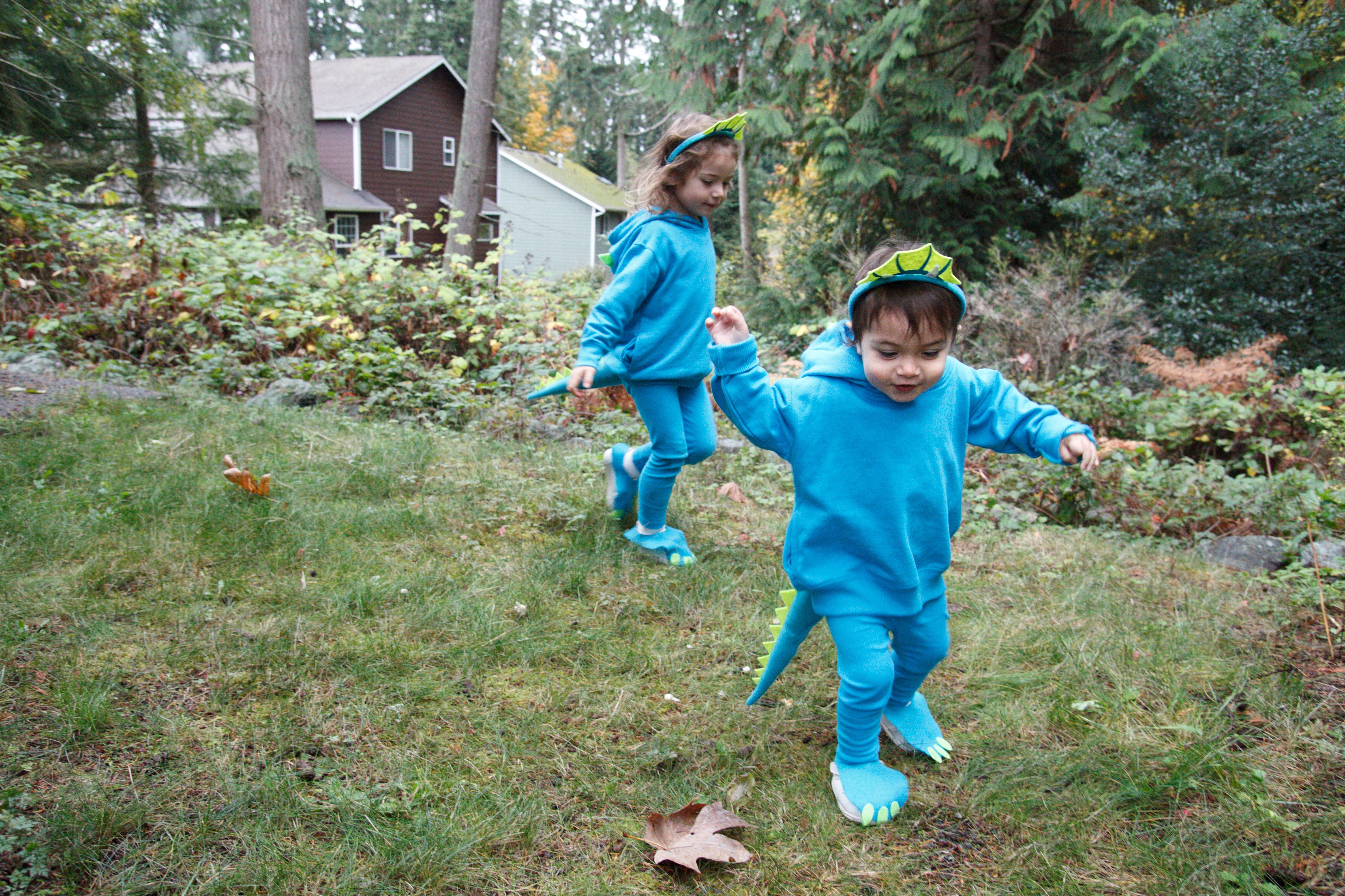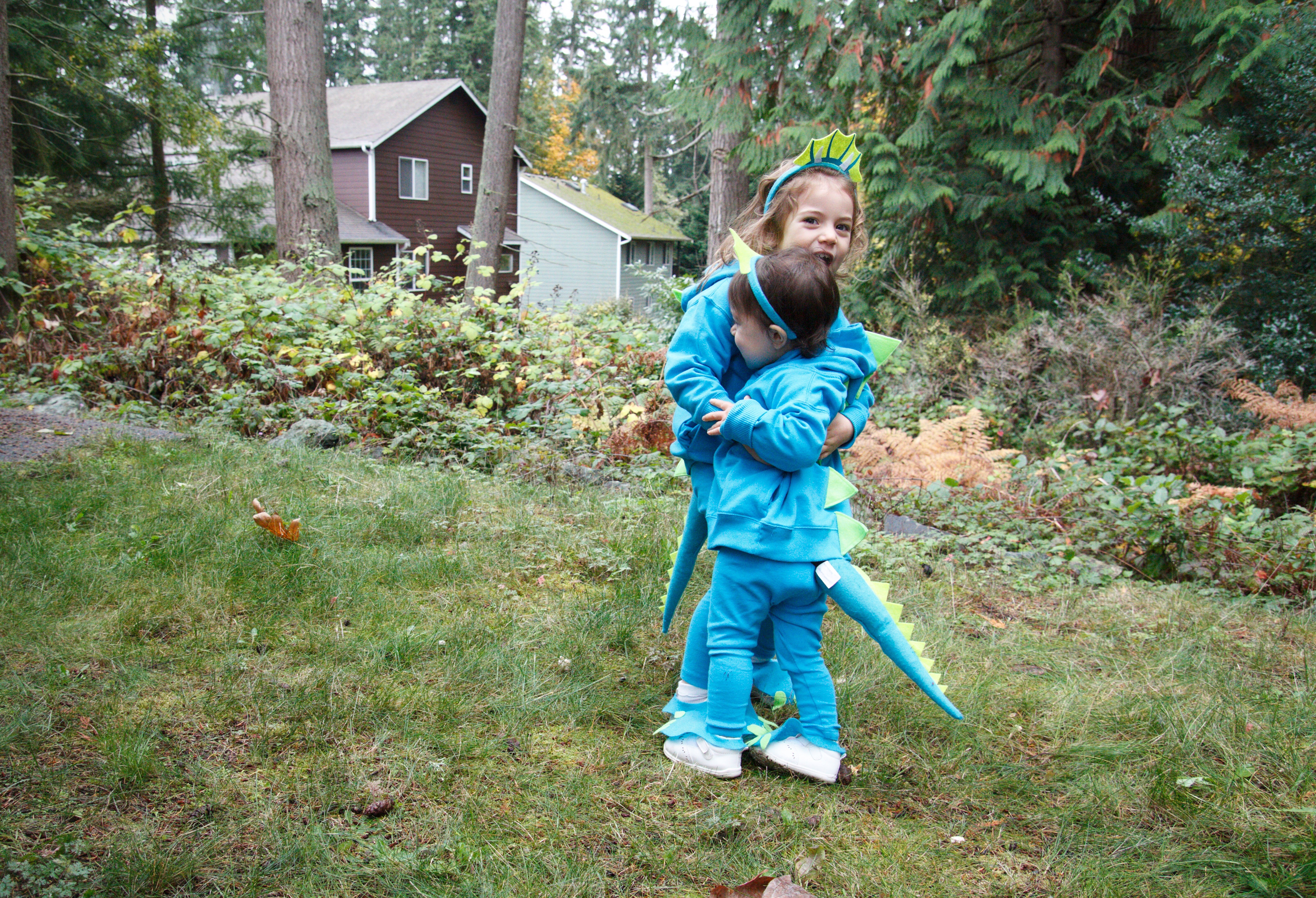 Ellie found a dinosaur tail and headband at Target and said she wanted to just wear that for Halloween. Of course, then I had to complete the costume :). Lila was supposed to be a dog because she loves dogs, but she wouldn’t let me put the furry costume on her. Every time Ellie wore her dinosaur tail and headband Lila wanted to wear it too so we went and picked up a set for Lila. She wants to do everything her sister is doing so it worked out perfectly to do a family-themed costume. Josh and I went as characters from the original Jurassic Park movie (we only got one picture taken by someone at his work). It was fun taking the girls out trick-or-treating. Lila wanted to be a part of it, but only if I held her haha.