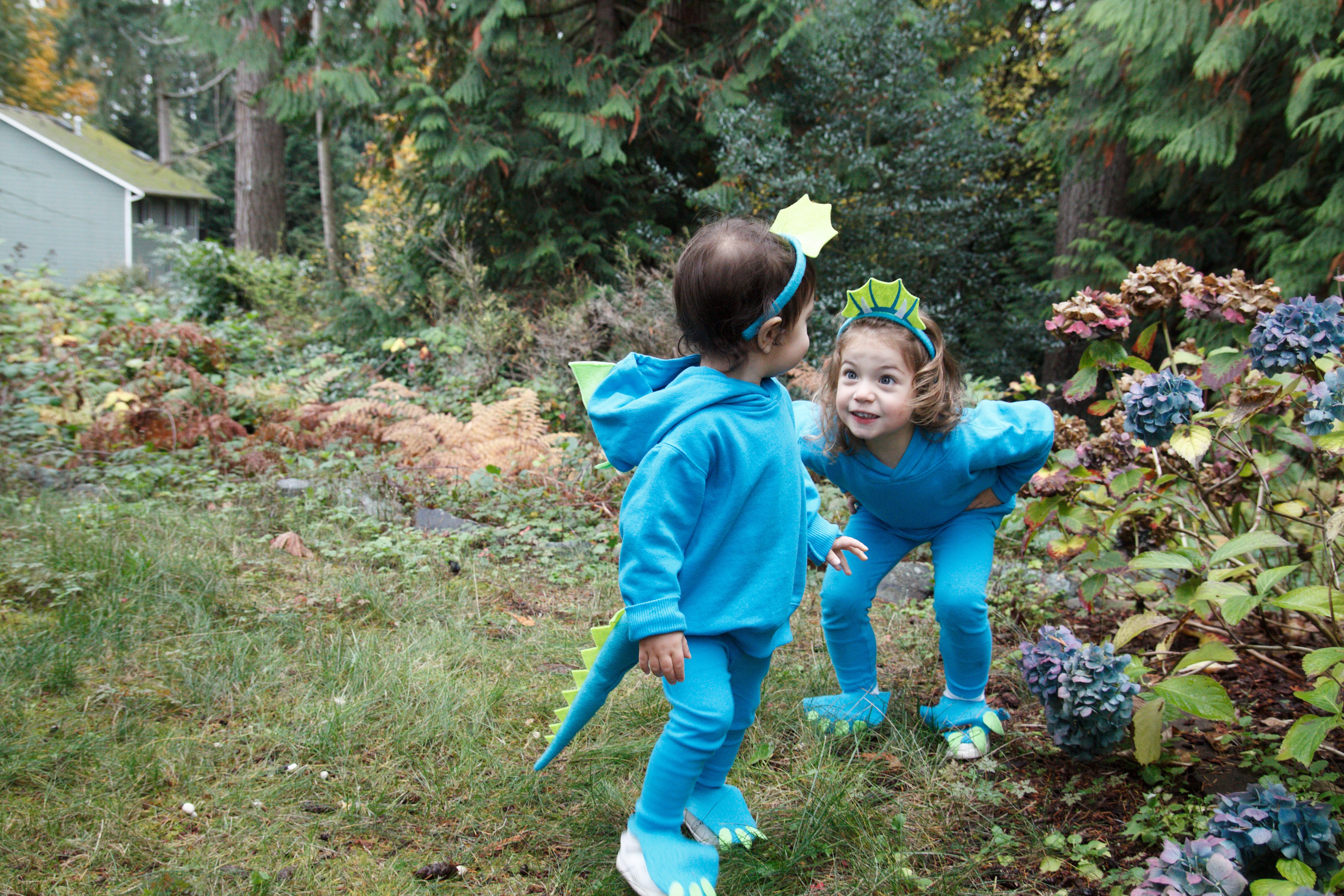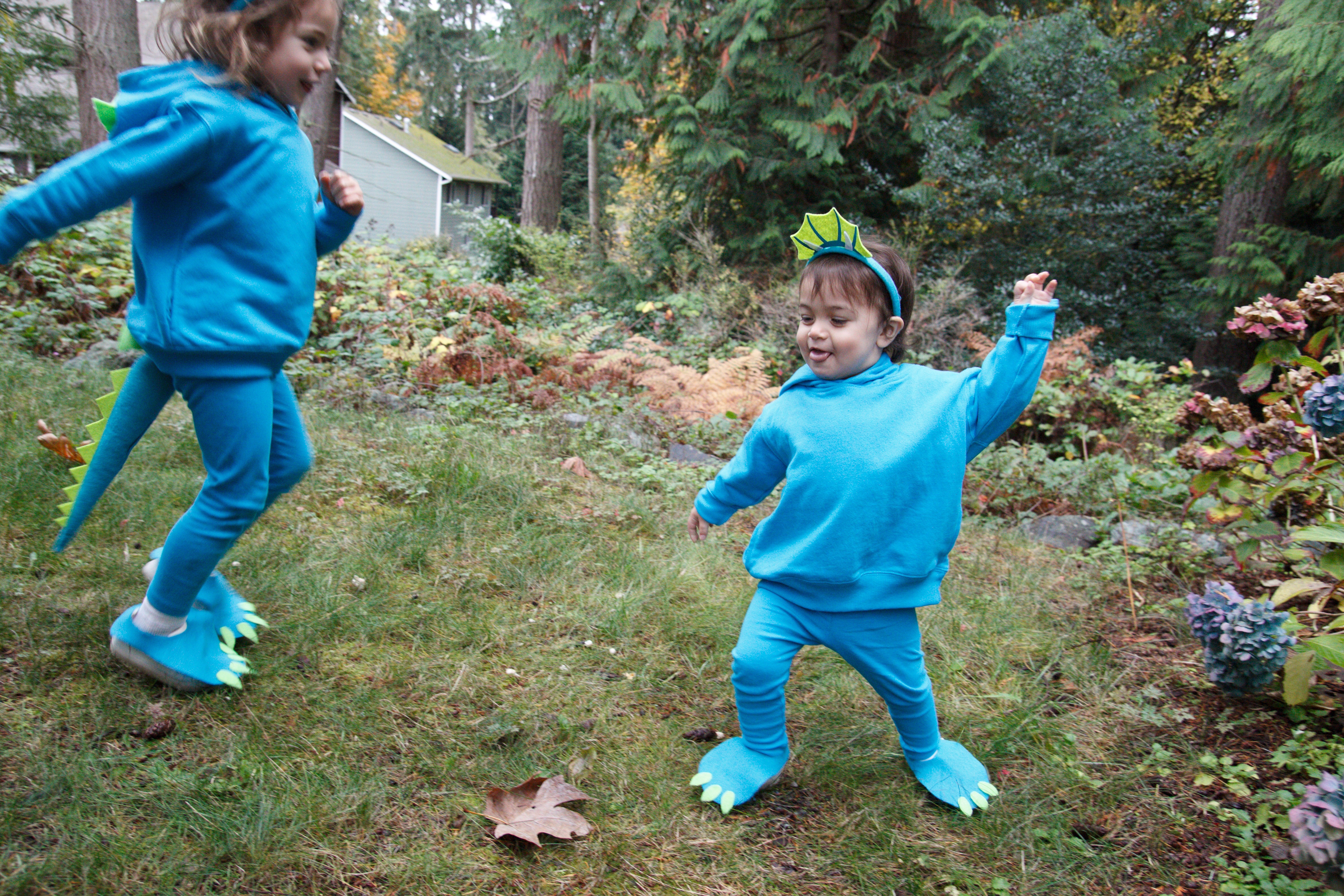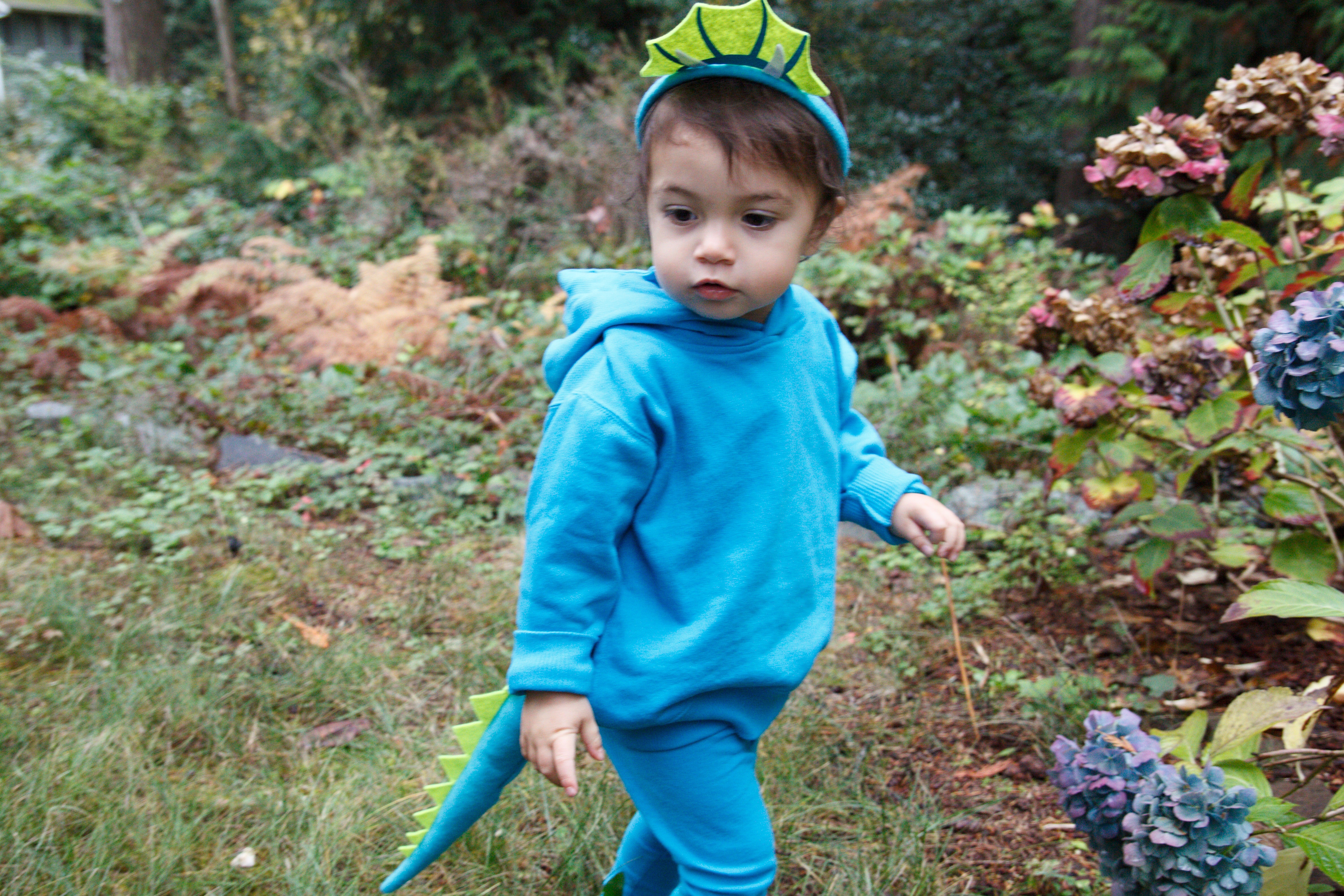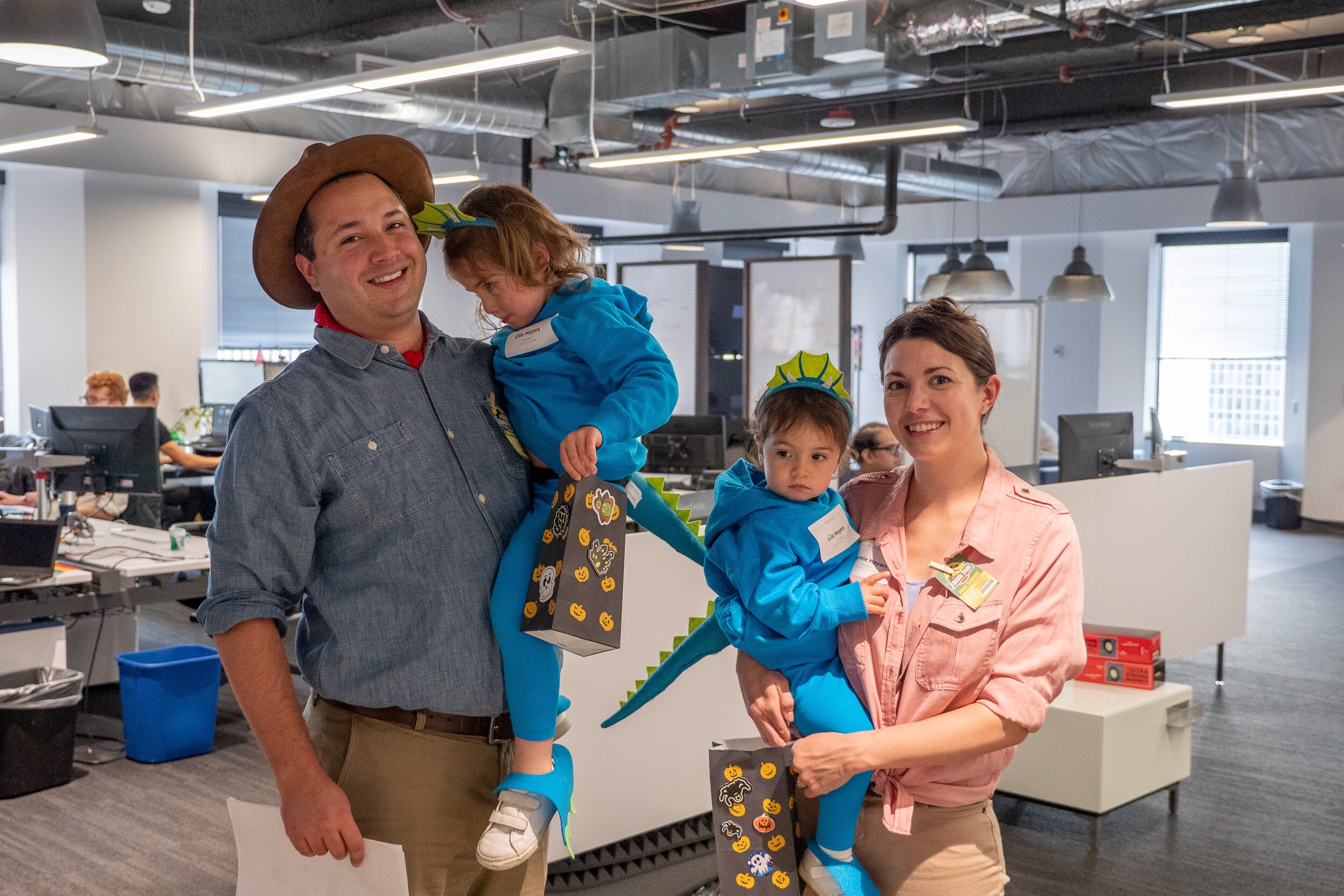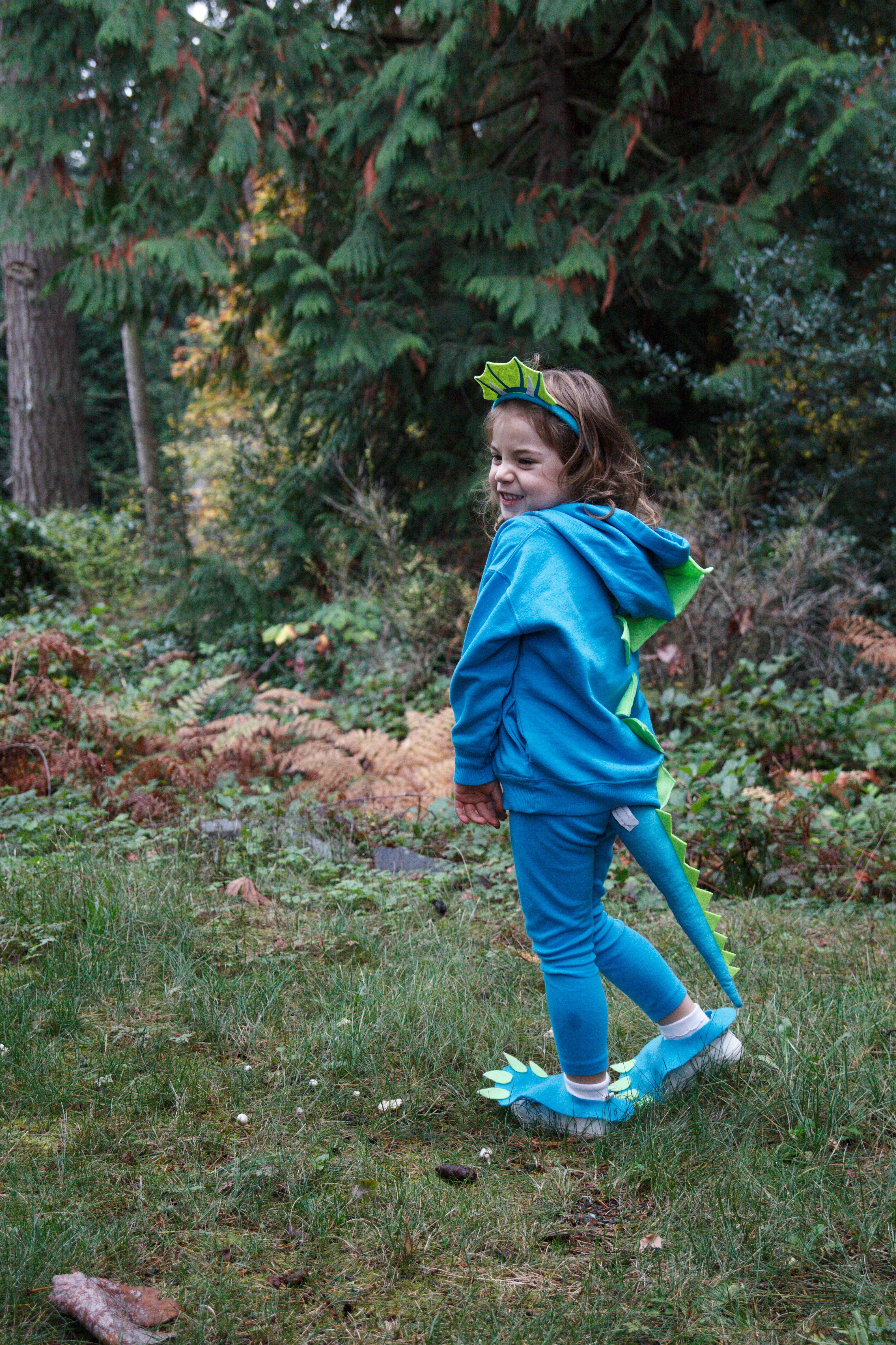 Ellie found a dinosaur tail and headband at Target and said she wanted to just wear that for Halloween. Of course, then I had to complete the costume :). Lila was supposed to be a dog because she loves dogs, but she wouldn’t let me put the furry costume on her. Every time Ellie wore her dinosaur tail and headband Lila wanted to wear it too so we went and picked up a set for Lila. She wants to do everything her sister is doing so it worked out perfectly to do a family-themed costume. Josh and I went as characters from the original Jurassic Park movie (we only got one picture taken by someone at his work). It was fun taking the girls out trick-or-treating. Lila wanted to be a part of it, but only if I held her haha.