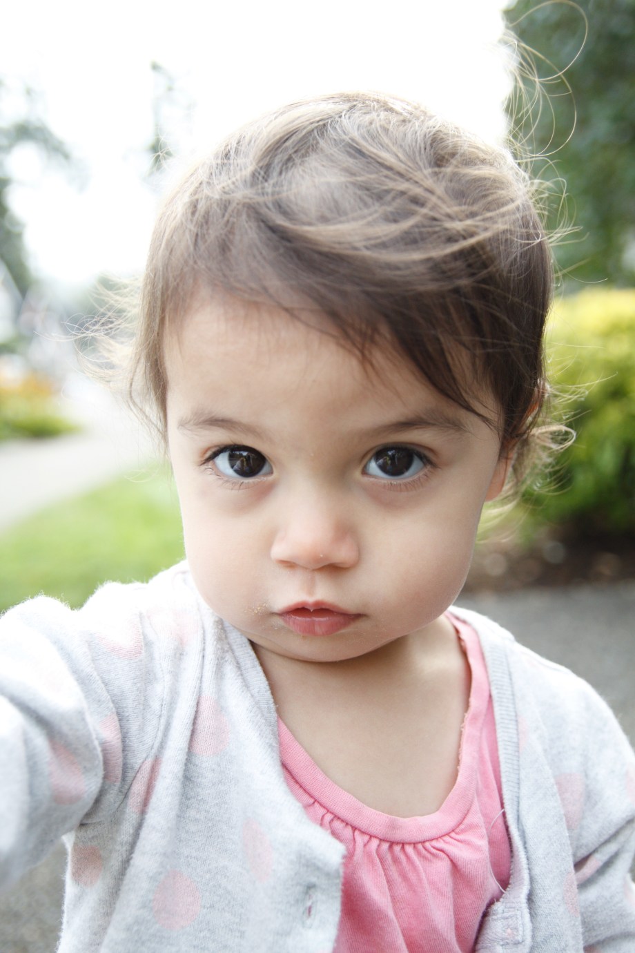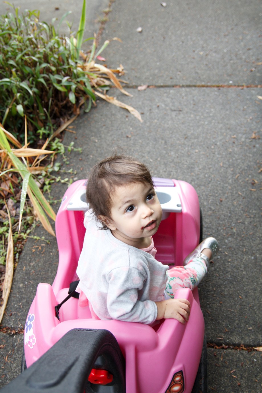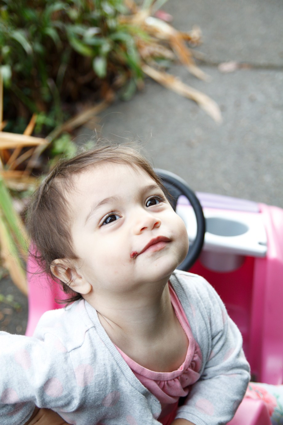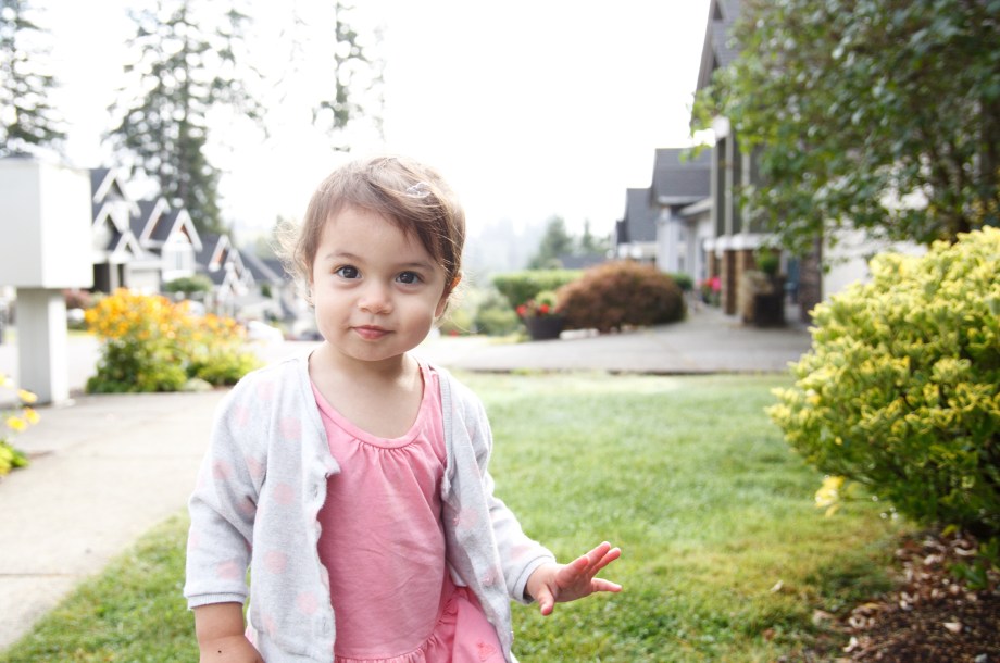 And asking for berries (blackberries) every time we pass them at our neighbor’s house. (She still asks for them now in November even though I tell her they’re gone. Sorry baby girl). You can see the evidence on her face…