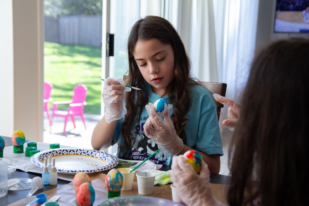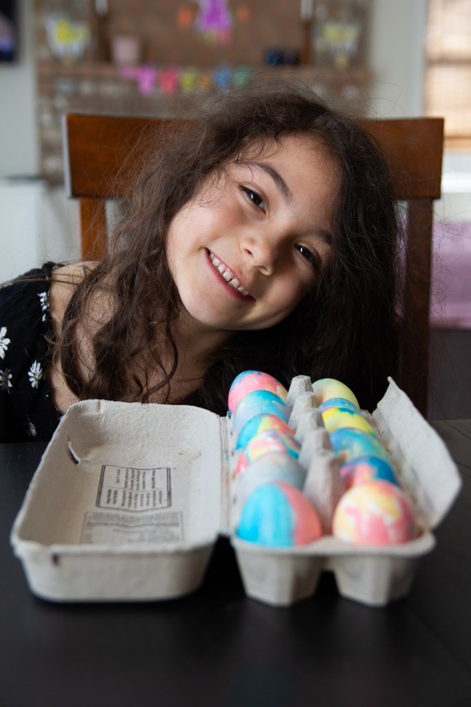 (Last Easter) It’s always a treat when it’s not raining on Easter and we’re able to enjoy the egg hunt in the backyard. Even better when it’s so nice they didn’t have to wear sweaters and coats. I think this was the first year Livvy enjoyed joining in on the fun. We always save the egg dyeing for the day of for another fun activity since we only hide the plastic ones. We used a science kit to do the egg dyeing that included a fizz reaction which the big girls enjoyed.