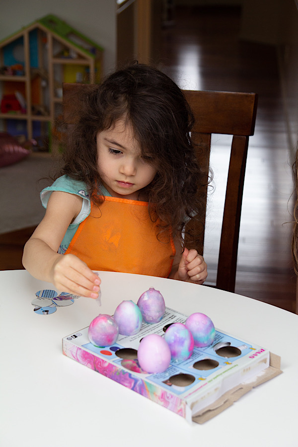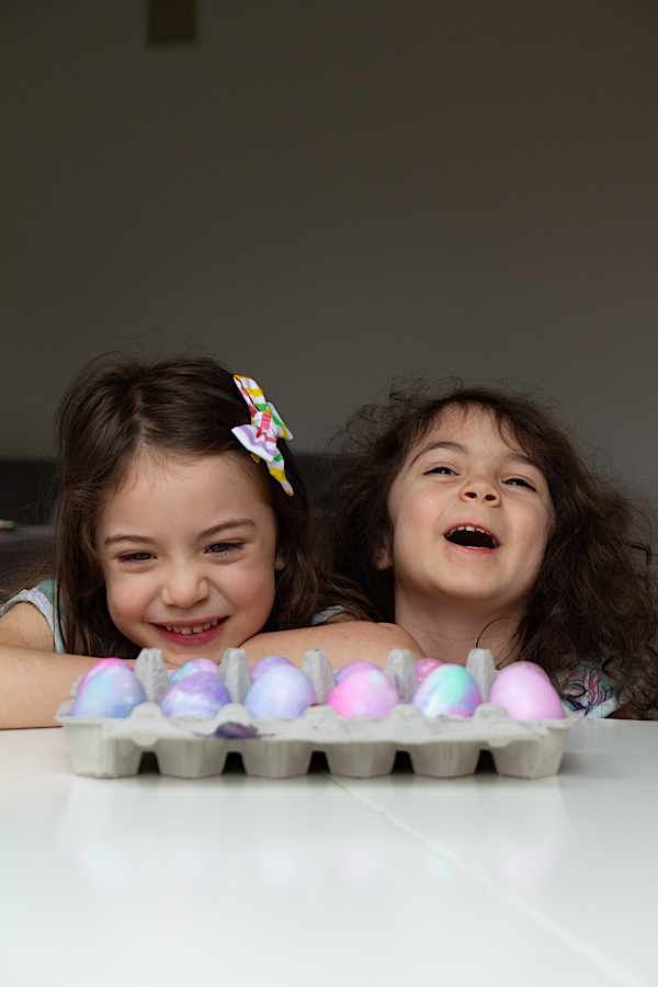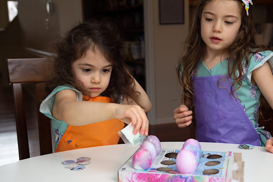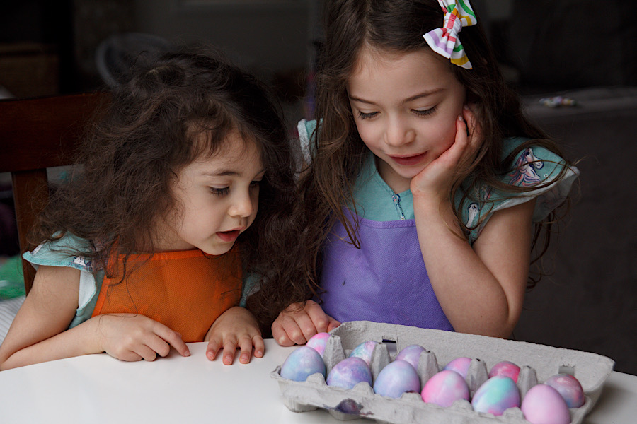 Happy Easter from these little bunnies. It was a rainy morning so they hunted for eggs indoors and did a glittery unicorn egg dye. They were not up for photos this day so I grabbed a few while they dyed eggs.